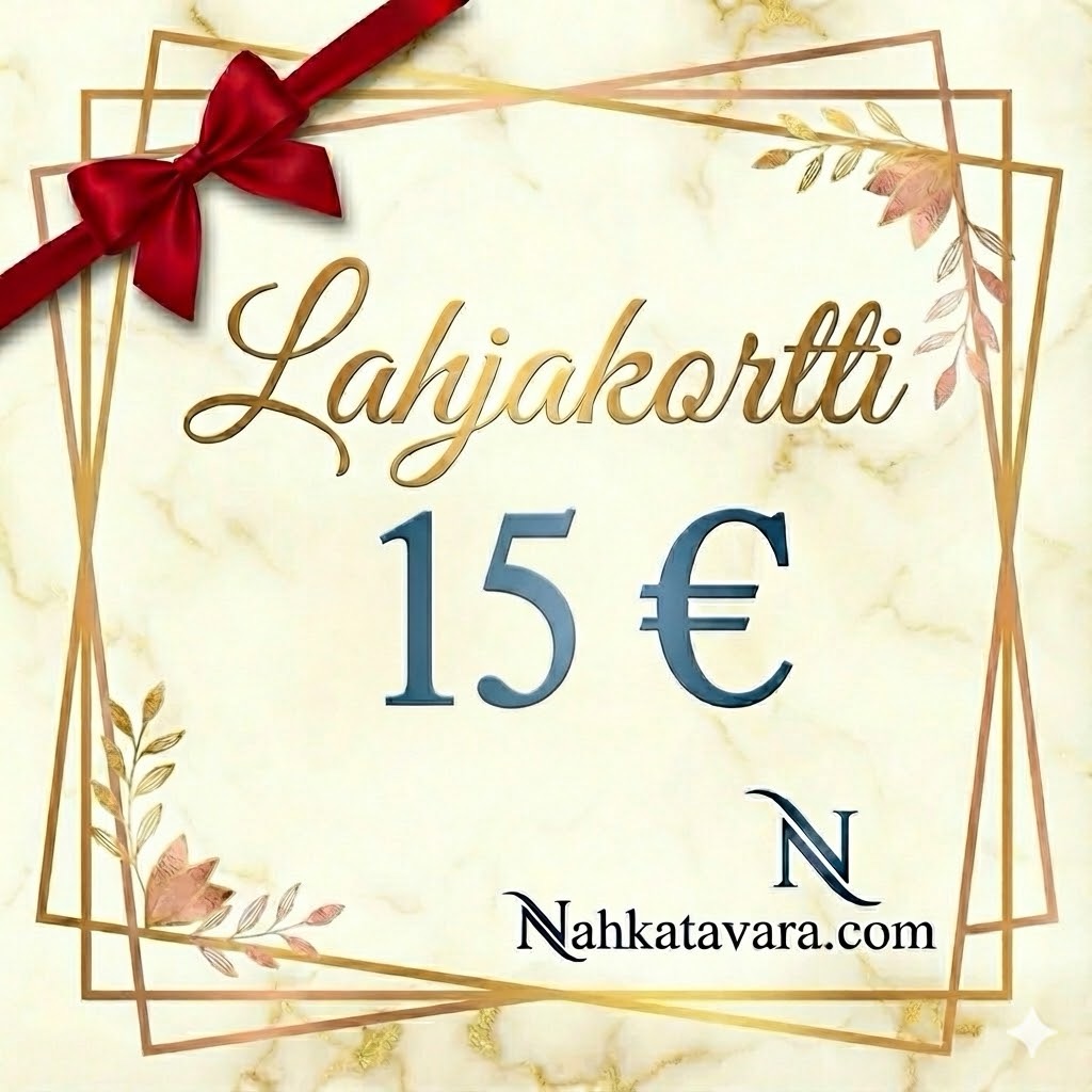 Hanki Nahkatavaran LAHJAKORTTI läheisellesi, ystävälle tai muuten tutulle – Maksa se ostoskorin ohjeitten mukaan.. Oston yhteydessä voit ilmoittaa toimitusosoitteen ja lähetämme Lahjakortin (mielellään sähköpostilla, mutta voimme lähettää sen myös postitse, tekstiviestillä tai whatsùpilla.. Lahjakorti on voimassa 6kk sen ostopäivästä. Oston yhteydessä tuleva tilausnumero toimii seurantana. Lahjakorttia voi käyttää joko kerralla kokonaan tai sitten osittain. Hankinnat voi tehdä verkkokaupassamme , esittämällä se tai tilausnumero liikkeissämme Savonlinnassa tai Lappeenrannassa.