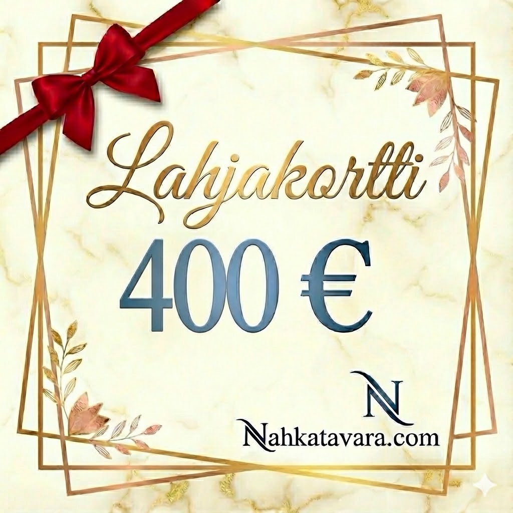 Hanki Nahkatavaran LAHJAKORTTI läheisellesi, ystävälle tai muuten tutulle – Maksa se ostoskorin ohjeitten mukaan.. Oston yhteydessä voit ilmoittaa toimitusosoitteen ja lähetämme Lahjakortin (mielellään sähköpostilla, mutta voimme lähettää sen myös postitse, tekstiviestillä tai whatsupilla.. Lahjakortti on voimassa 6kk sen ostopäivästä. Oston yhteydessä tuleva tilausnumero toimii seurantana. Lahjakorttia voi käyttää joko kerralla kokonaan tai sitten osittain. Hankinnat voi tehdä verkkokaupassamme , esittämällä se tai tilausnumero liikkeissämme Savonlinnassa  tai Lappeenrannassa.