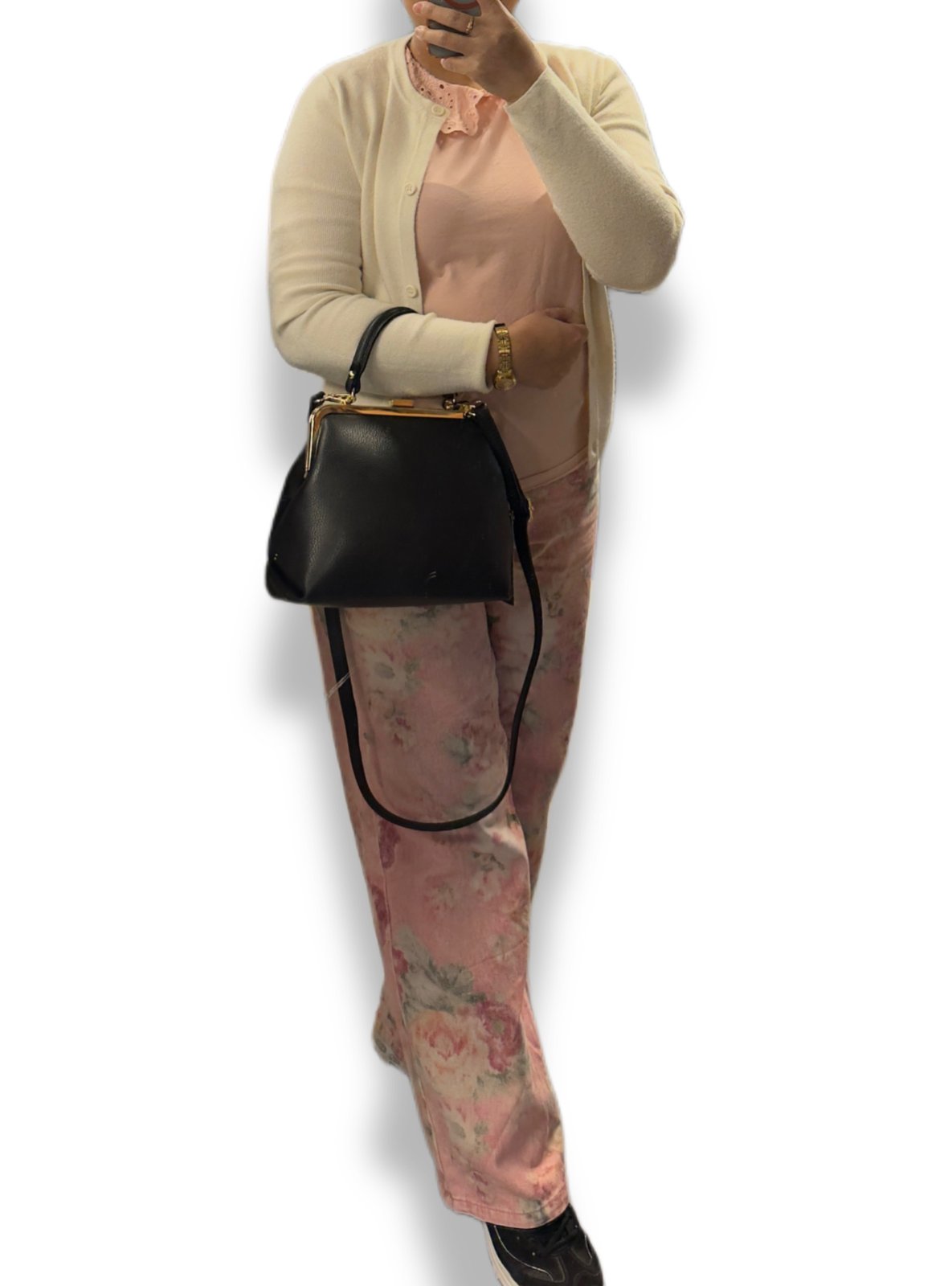 Laukku suljetaan näyttävällä kullanvärisellä suljinmekanismilla, joka avataan nappia nostamalla. Kompaktista koostaan huolimatta laukku tarjoaa tilaa tärkeimmille tavaroille, ja sisältä löytyy käytännöllinen vetoketjutasku.