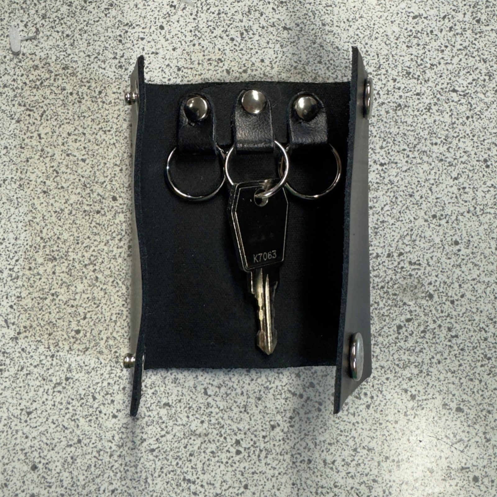 Bagmakersin kotimainen avainkotelo on valmistettu laadukkaasta mustasta nahasta ja varustettu kolmella renkaalla. Tämä 9 cm kokoinen avainkotelo sopii erityisesti pienemmille avaimille, yhdistäen käytännöllisyyden ja tyylikkyyden.
