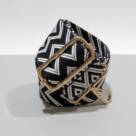 Päivitä laukkusi ilme tällä upealla, leveällä vaihtohihnalla! Hihnassa on tyylikäs valkoinen ja musta graafinen kuviointi, joka tuo asuun särmää ja persoonallisuutta. Leveän muotoilun ansiosta hihna tuntuu mukavalta olkapäällä raskaammankin laukun kanssa.