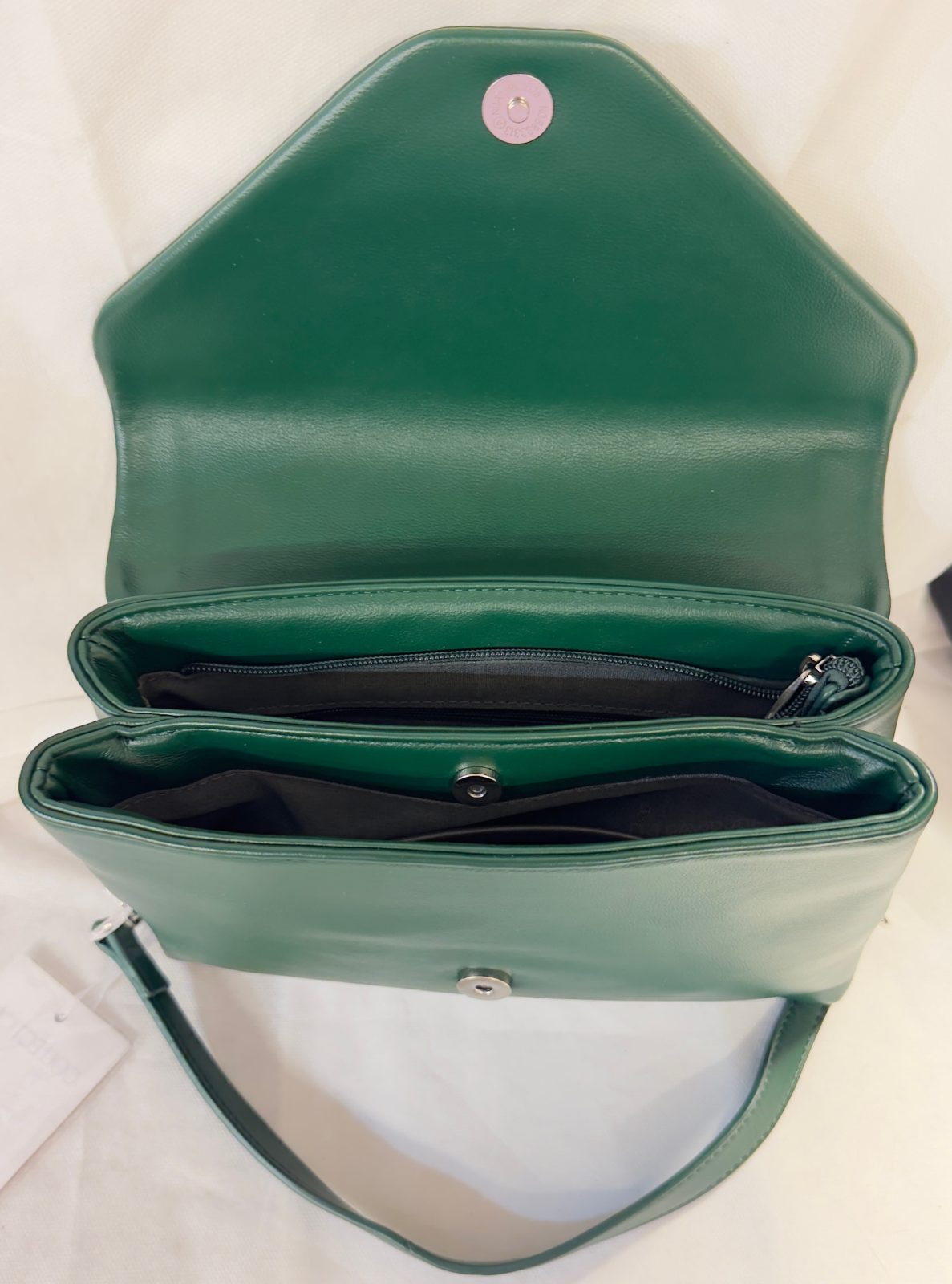 Käytännöllinen sisus: Laukun sisällä on erinomaiset säilytysratkaisut. Siinä on kaksi erillistä vetoketjutaskuatärkeille tavaroille sekä pienet avotaskut esimerkiksi puhelimelle tai avaimille.