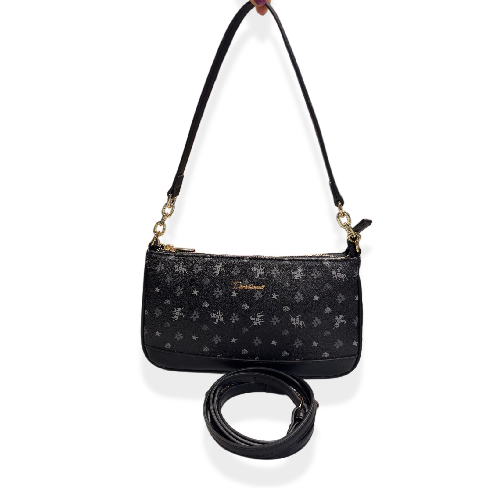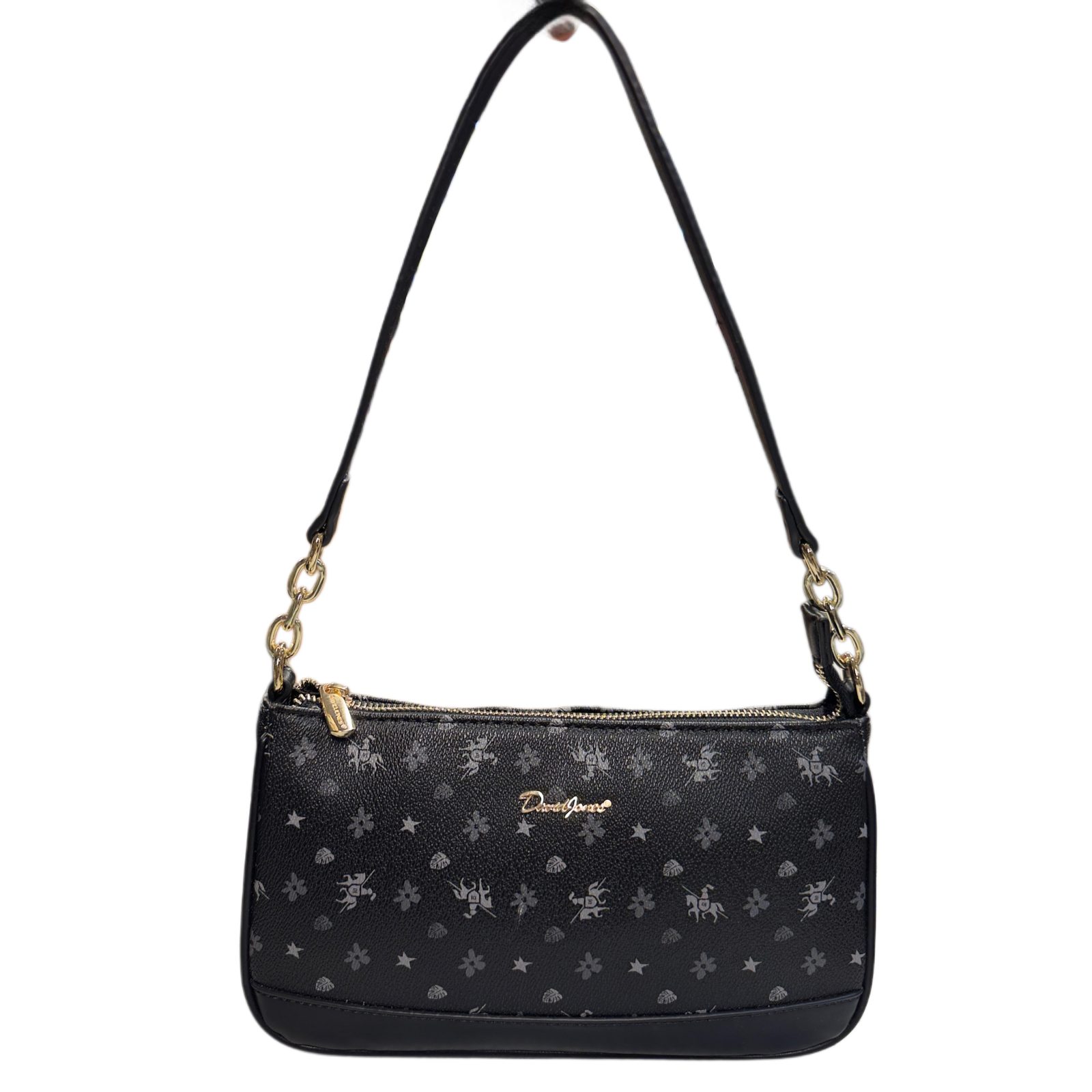 Etsitkö täydellistä pikkulaukkua, joka taipuu niin tyylikkääksi kainalolaukuksi kuin rennoksi crossover-malliksi? David Jones -olkalaukku on varma valinta trenditietoiselle pukeutujalle. Laukun musta, hillitty kuviointi ja laadukas keinonahka tekevät siitä ajattoman asusteen.