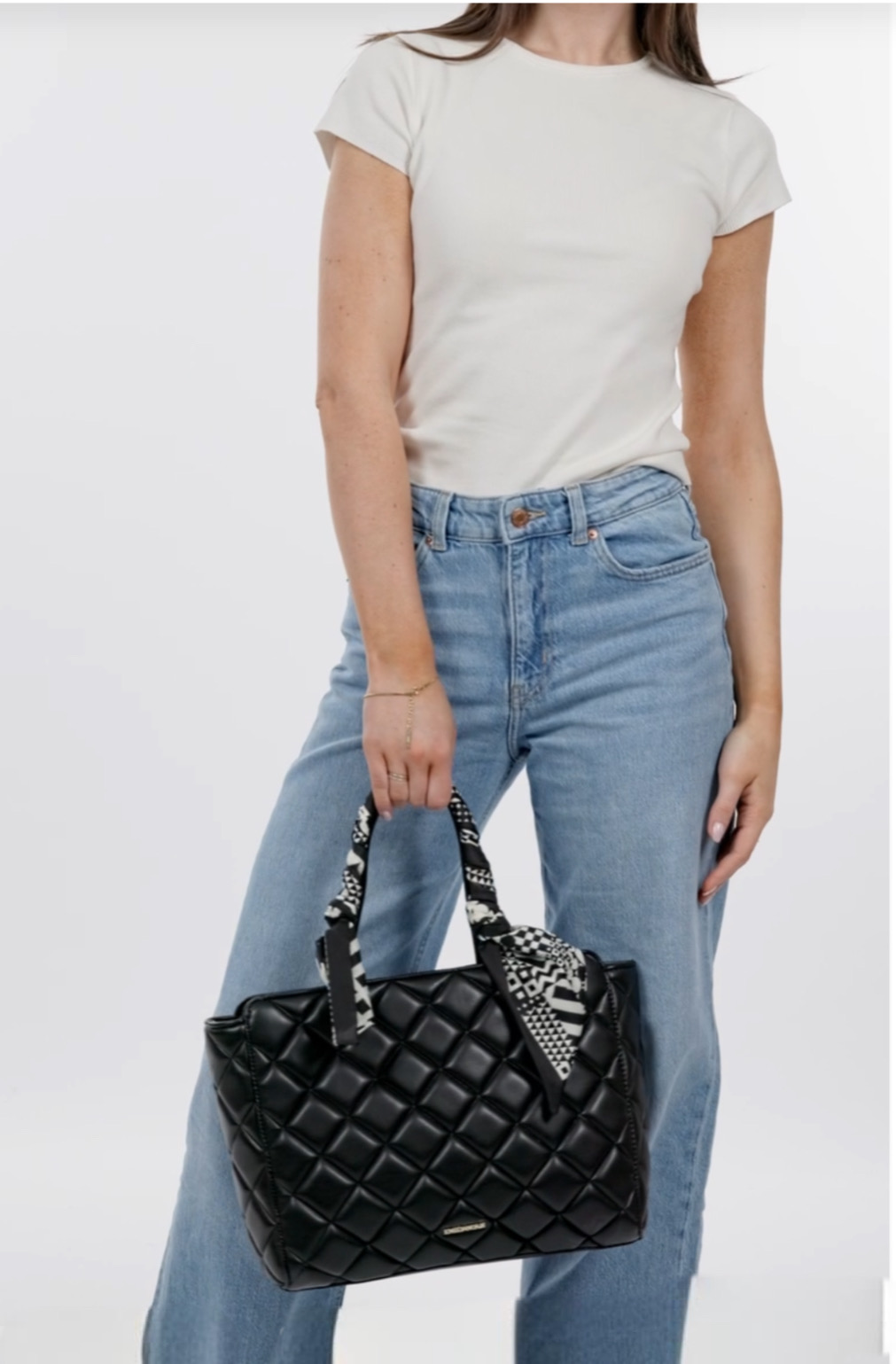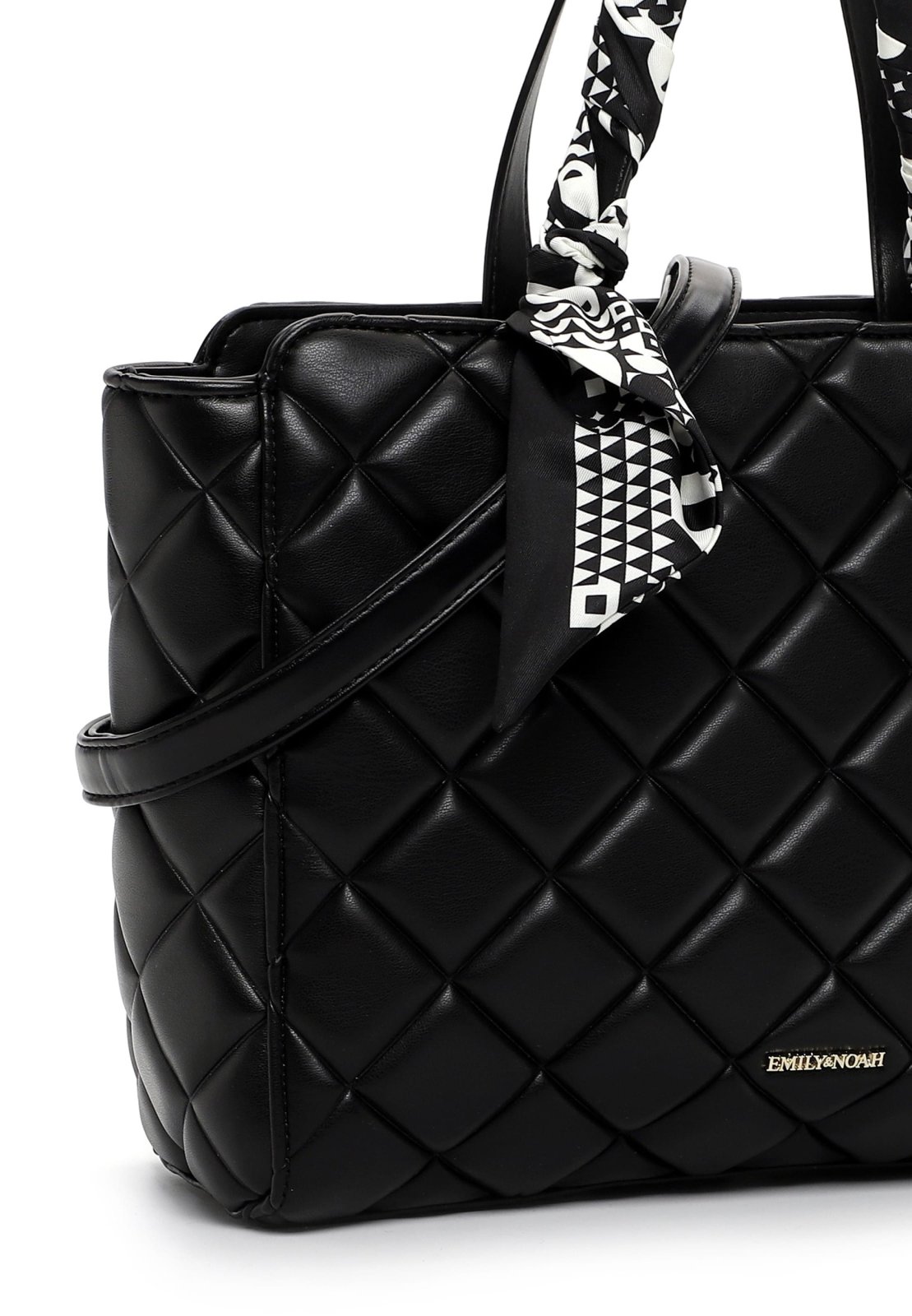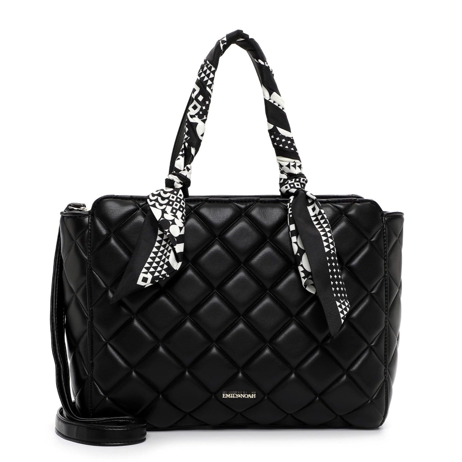 E&N Ellen Shopper – musta tikattu laukku huivikoristeella
