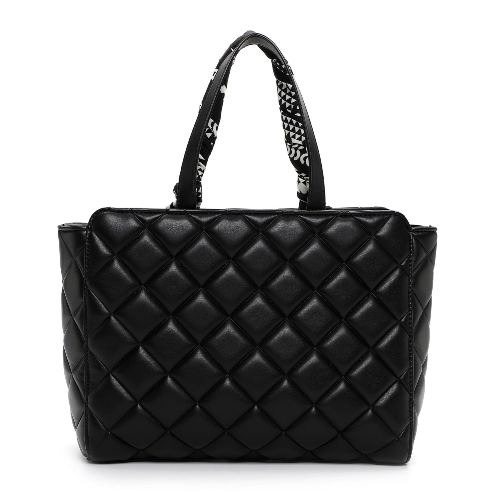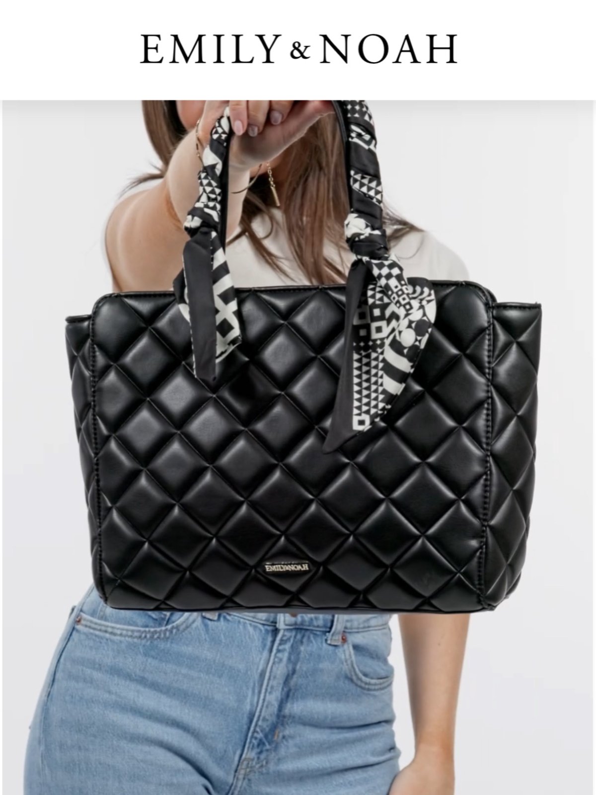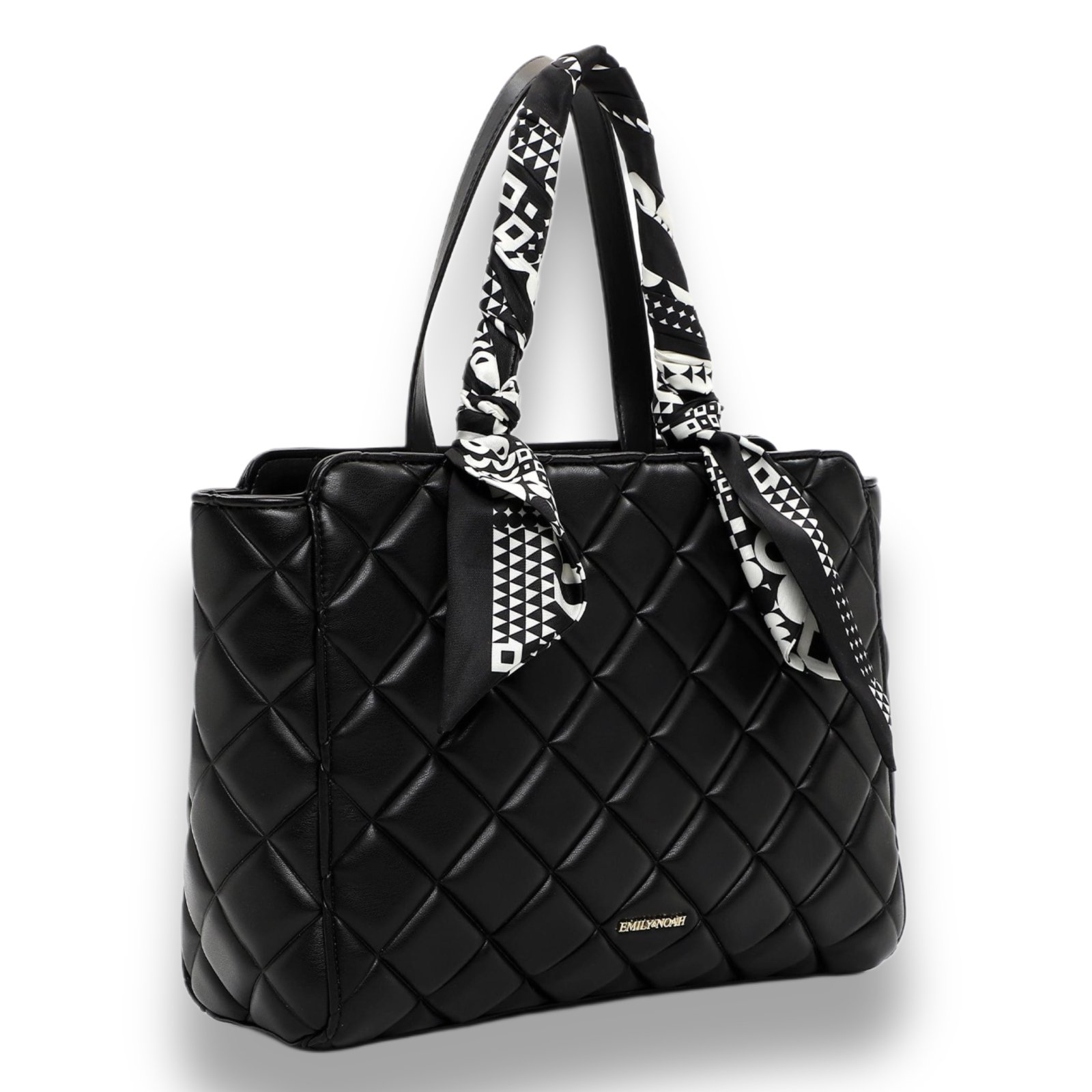 E&N Ellen Shopper – musta tikattu laukku huivikoristeella