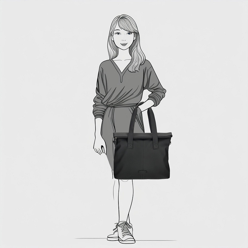 Laukussa on kaksi olkahihnaa sekä irrotettava pitkä hihna, joten voit kantaa sitä juuri sinulle sopivalla tavalla. Vetoketjukiinnityksen lisäksi laukussa on magneettikiinnitys, jonka avulla laukun saa halutessaan kompaktimpaan muotoon.