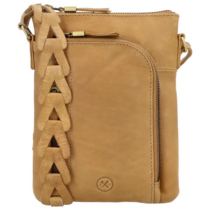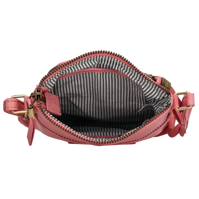 Trendikäs ja pieni crossbody-laukku Hide & Stitchesin Daydreamer-sarjasta, valmistettu aidosta nahasta. Laukun päätasku suljetaan vetoketjulla. Sisäpuolella on pieni vetoketjullinen tasku. Laukun etupuolella on lisäksi vetoketjullinen tasku ja takapuolella avoin tasku. Pitkä ja säädettävä olkahihna antaa laukulle tyylikkään ilmeen. Uniikki geometrinen olkahihna, jossa näyttävä cut-out-kuviointi. Erottuva design antaa laukulle modernin ja persoonallisen ilmeen.
