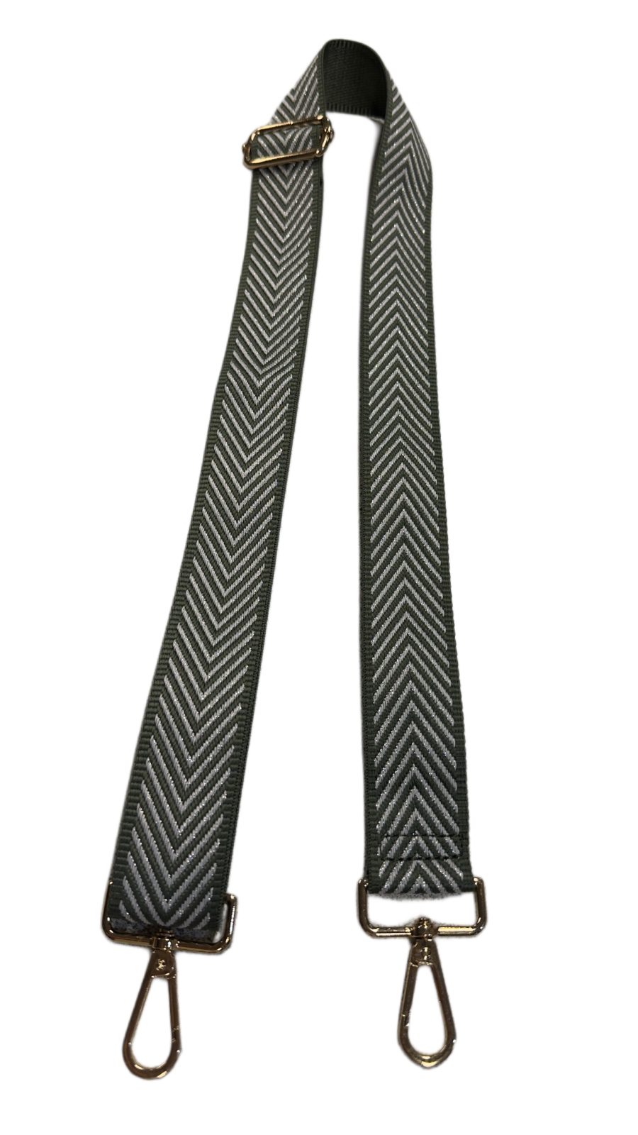 Hihna on valmistettu kestävästä polyesterikankaasta ja siinä on kauniit kullanväriset pikahakaset, jotka tekevät kiinnityksestä helppoa ja nopeaa. Säädettävä pituus takaa täydellisen istuvuuden eri tyyppisille laukuille -olkalaukusta crossbodyyn.Tämä olkahihna hurmaa yksityiskohdillaan- V-muotoinen koriste, jossa kimaltelee hopeansävyinen-bling2x /valkoinen , tuo ripauksen ylellisyyttä tyyliisi.