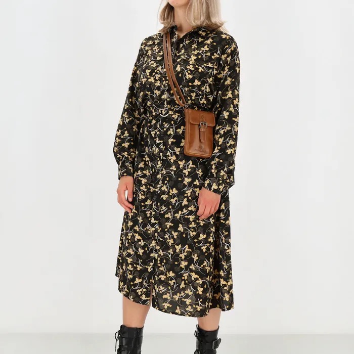 Kuinka suloinen tämä puhelinlaukku on! Puhelinlaukut ovat aina käteviä, sillä ne pitävät puhelimen helposti saatavilla. Laukussa on yksi päätasku, johon puhelin mahtuu hyvin. Päätasku suljetaan läpällä ja soljella. Laukun takapuolella on lisäksi vetoketjullinen tasku. Säädettävän olkahihnan ansiosta voit käyttää laukkua juuri sinulle sopivalla korkeudella. Ihastuitko jo tähän kauniiseen puhelinlaukkuun?