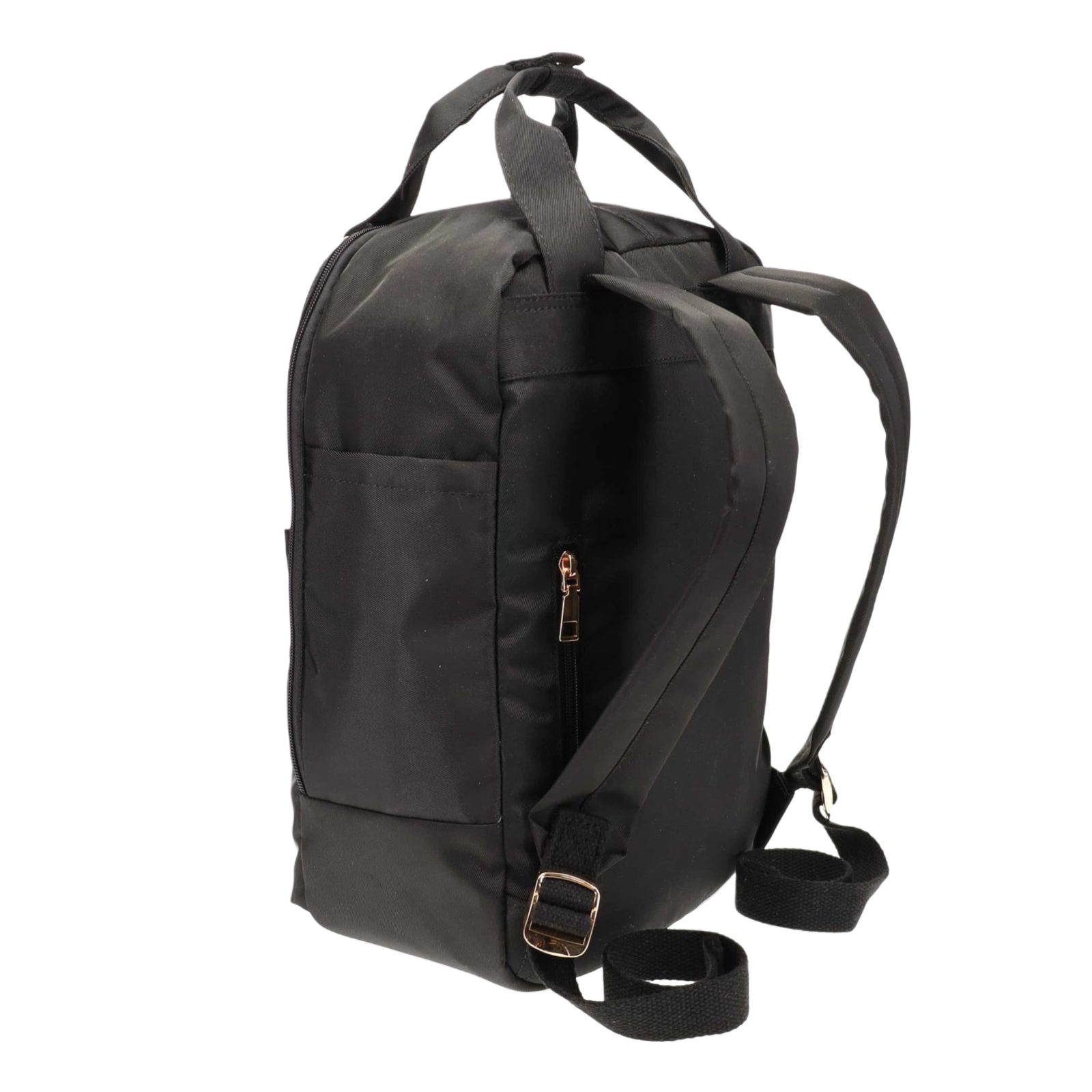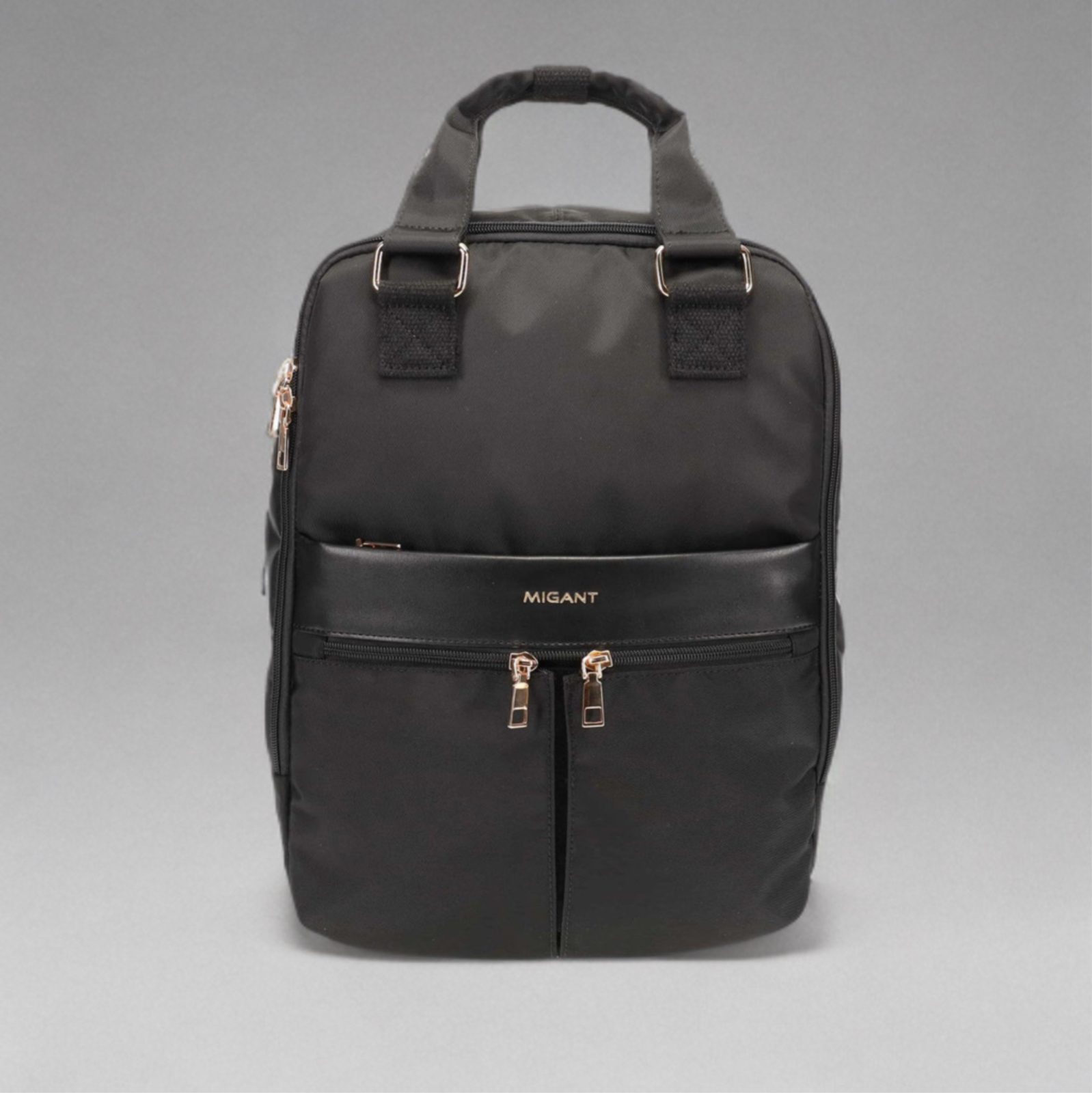 Kaksi etutaskua tarjoavat helpon pääsyn tärkeimpiin tavaroihin, ja sisäpuolella on pehmustettu osio kannettavalle tietokoneelle. Tukevat kantokahvat ja sivutaskut, esimerkiksi juomapullolle, lisäävät käyttömukavuutta. Kiiltäväpintainen tekstiili ja kultaiset yksityiskohdat viimeistelevät tyylikkään ilmeen.