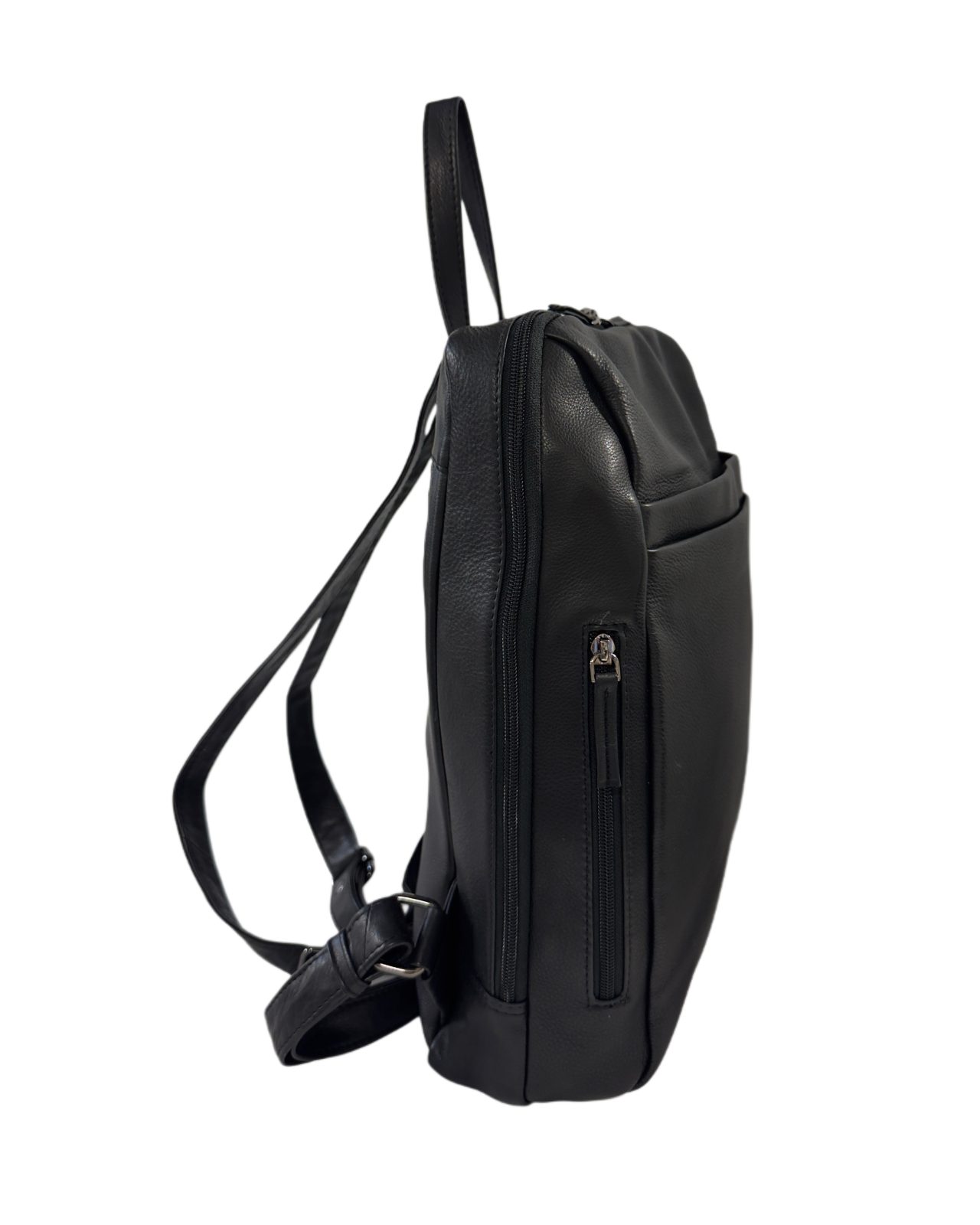 Sisätilat on suunniteltu toimiviksi ja selkeiksi. Repussa on vetoketjullinen tilanjakaja, avoin lokero sekä vetoketjutasku, jotka auttavat pitämään tavarat järjestyksessä. Kompaktista koostaan huolimatta nahkareppu on tilava ja käytännöllinen.