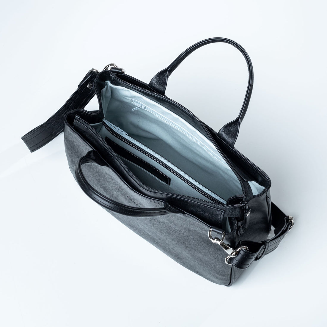 • Laukun sisällä vuorikangas, jossa vetoketjullinen väliseinä. Väliseinässä kännykkätasku, takana vetoketjutask