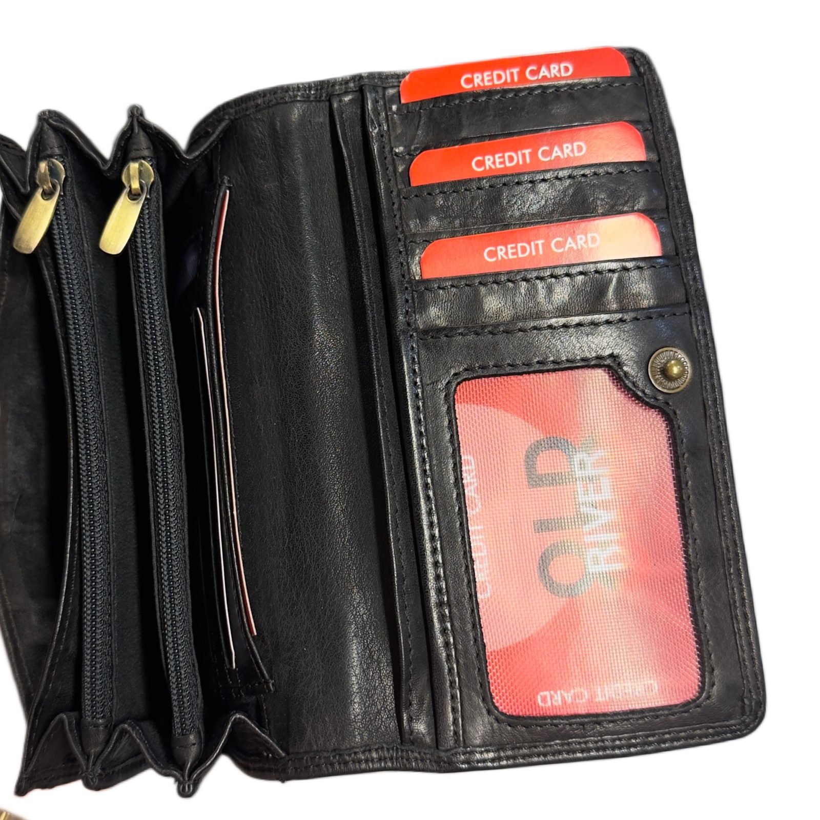 Lompakossa on 10 korttipaikkaa, joista yksi on läpinäkyvä, sekä 6 lokeroa seteleille tai papereille. Käytännöllisyyttä lisäävät kaksi vetoketjullista taskua – 2 keskellä ja 1 takana-kolikoille tai muille pienille arvoesineille.