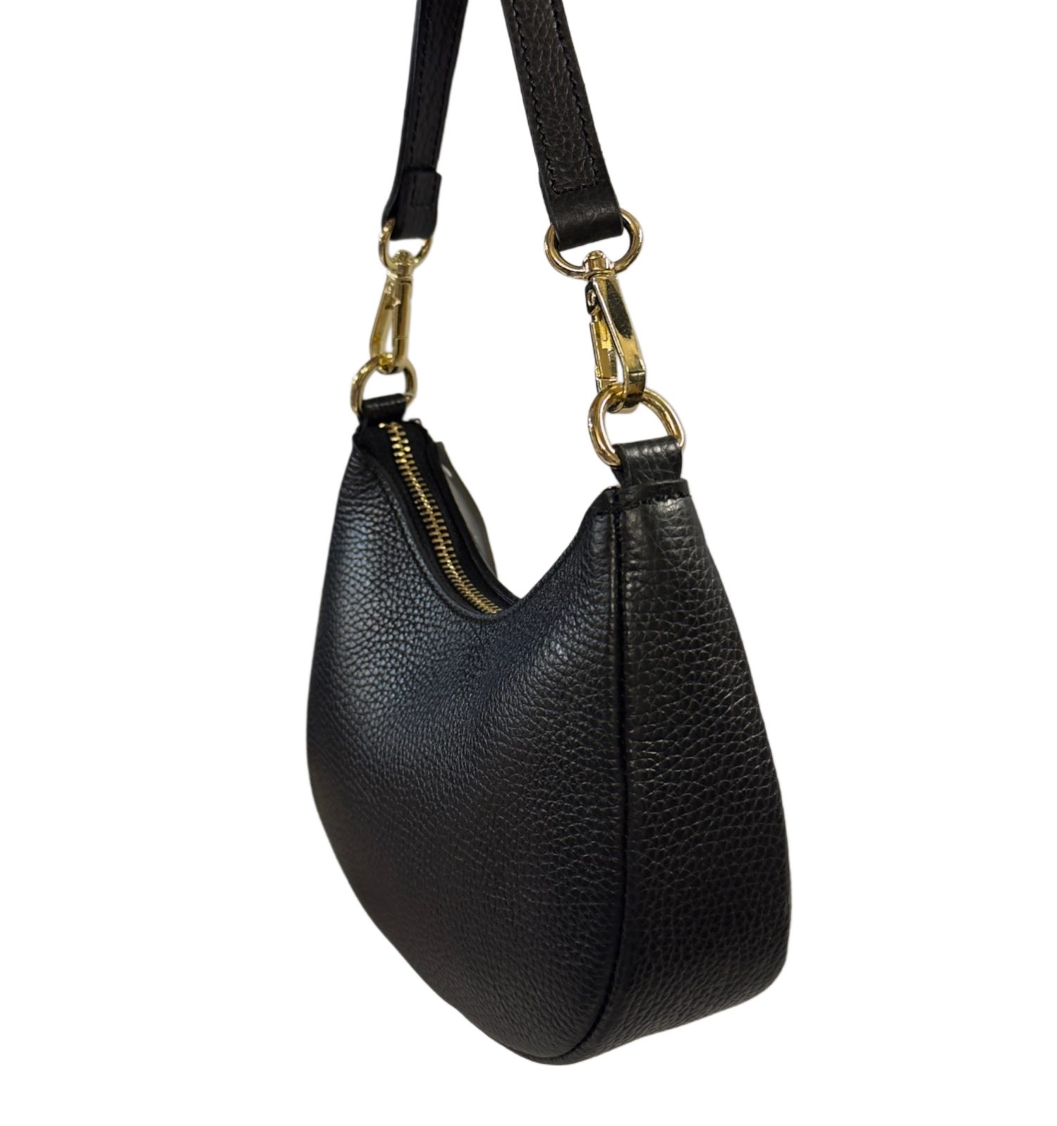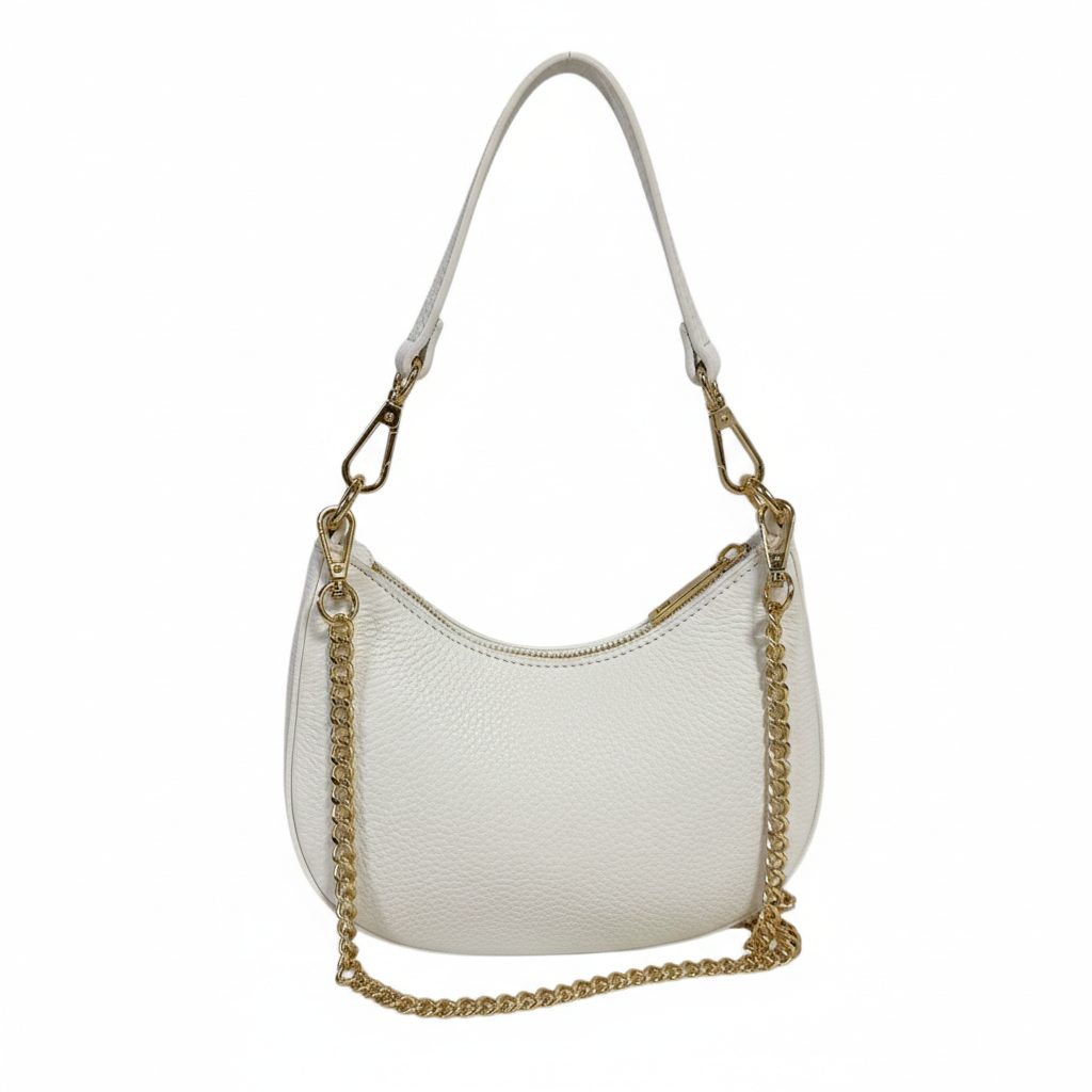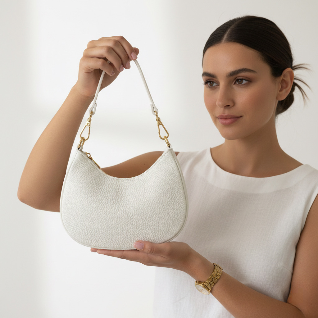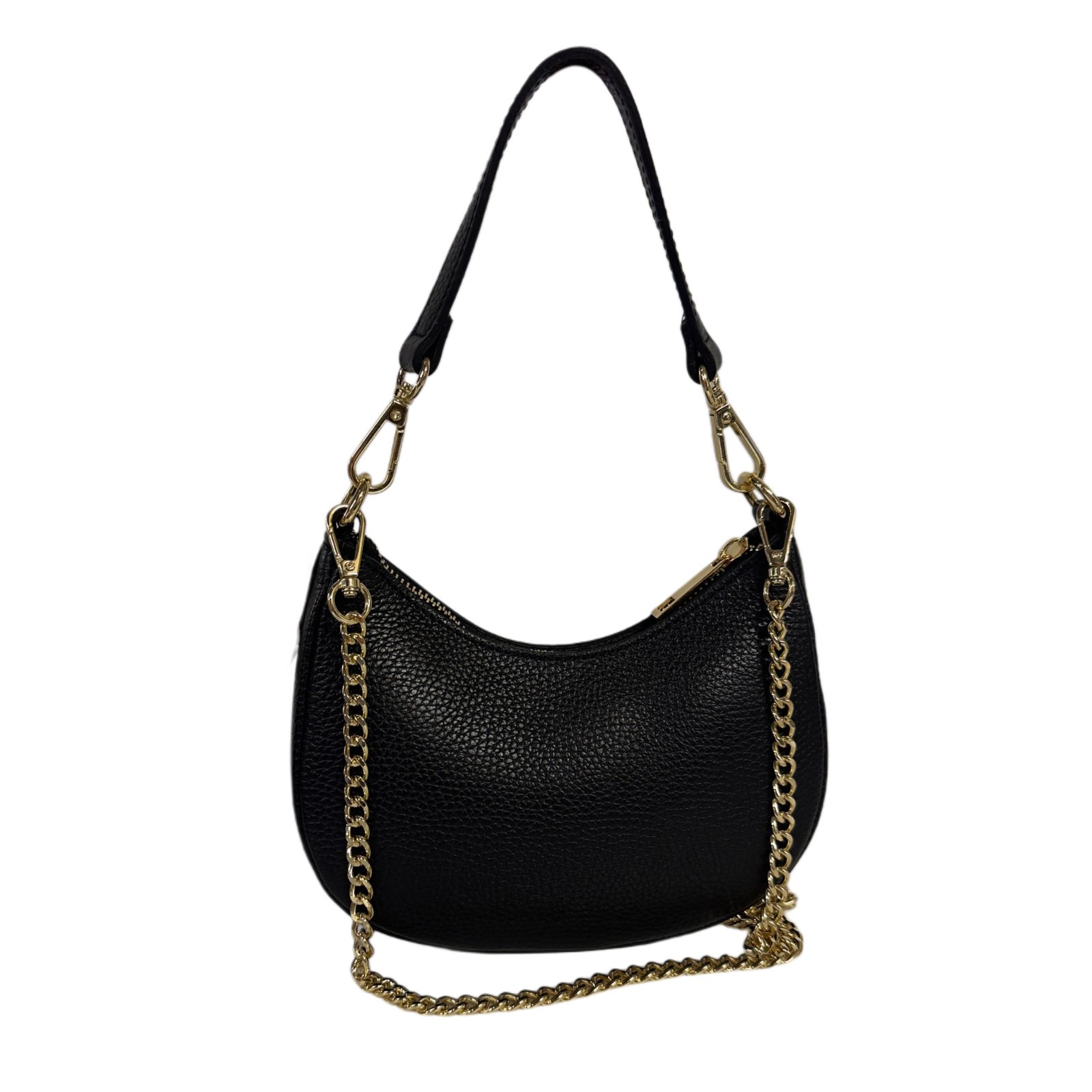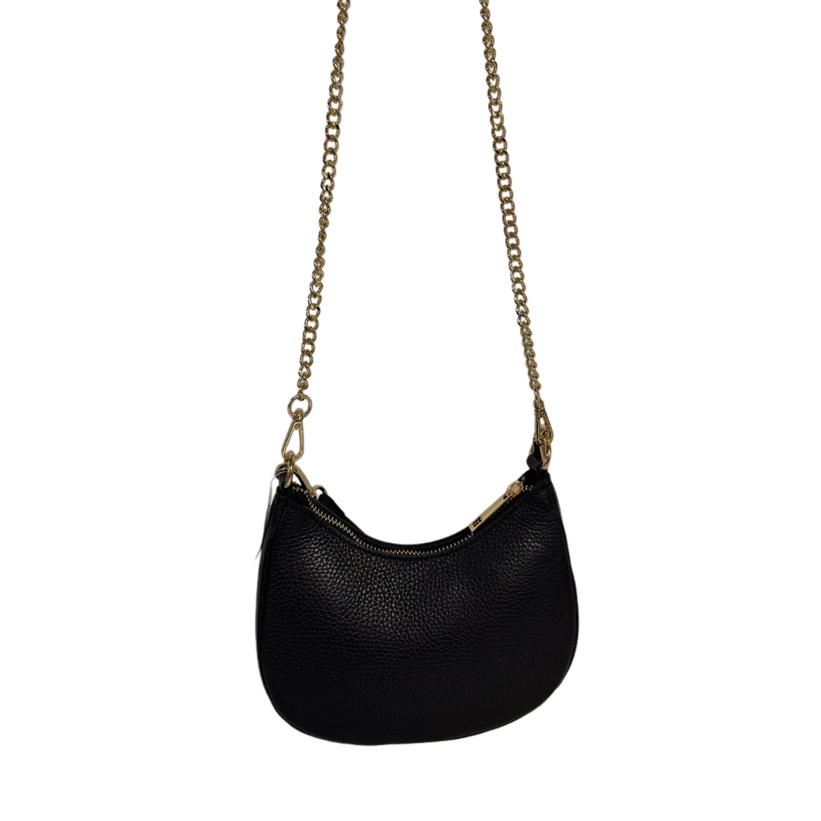 Tämä elegantti pieni laukku hurmaa kaarevalla muodollaan ja ajattomalla designillaan. Laukku sopii erinomaisesti sekä juhlaan että arkeen ja viimeistelee asukokonaisuuden tyylikkäästi.