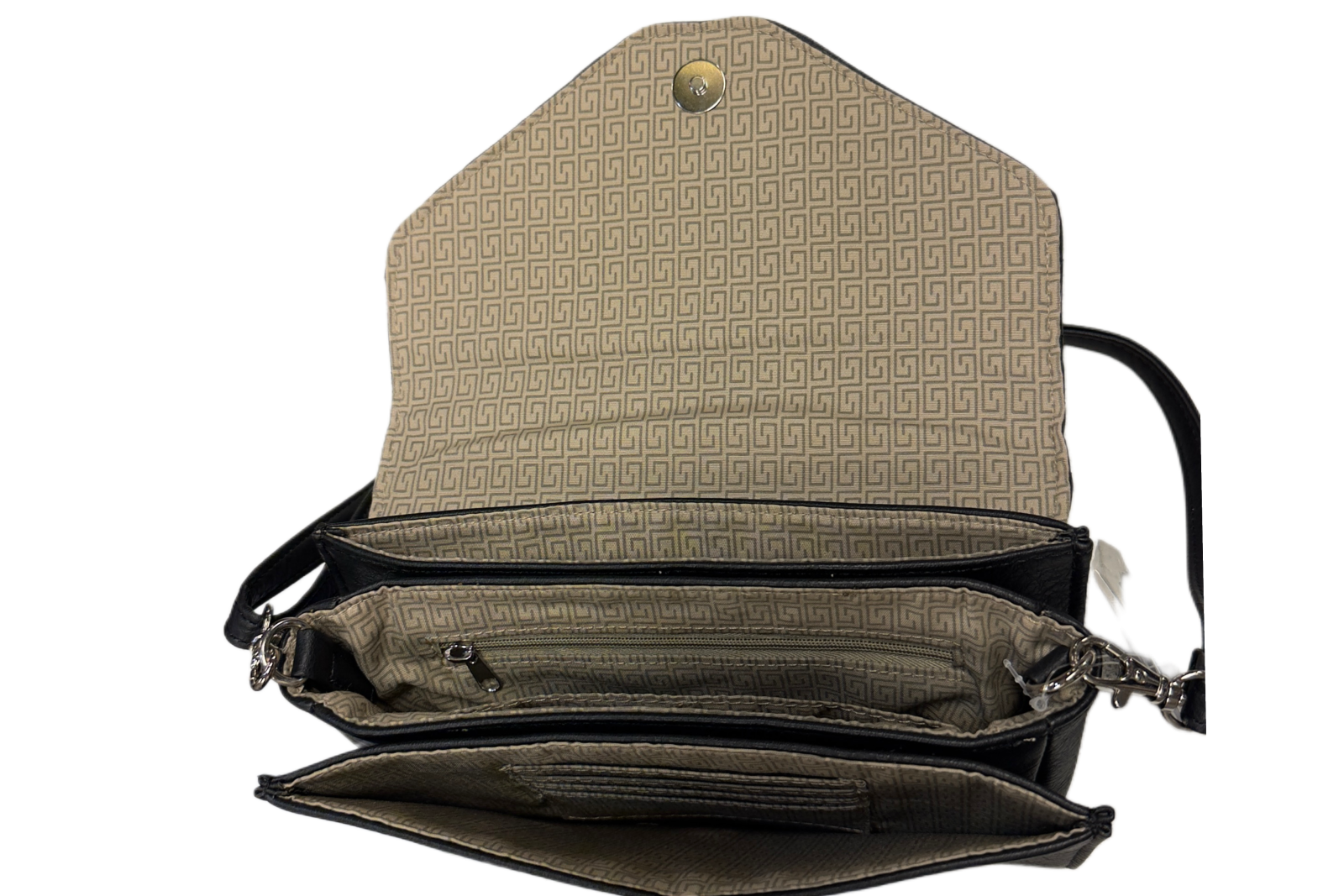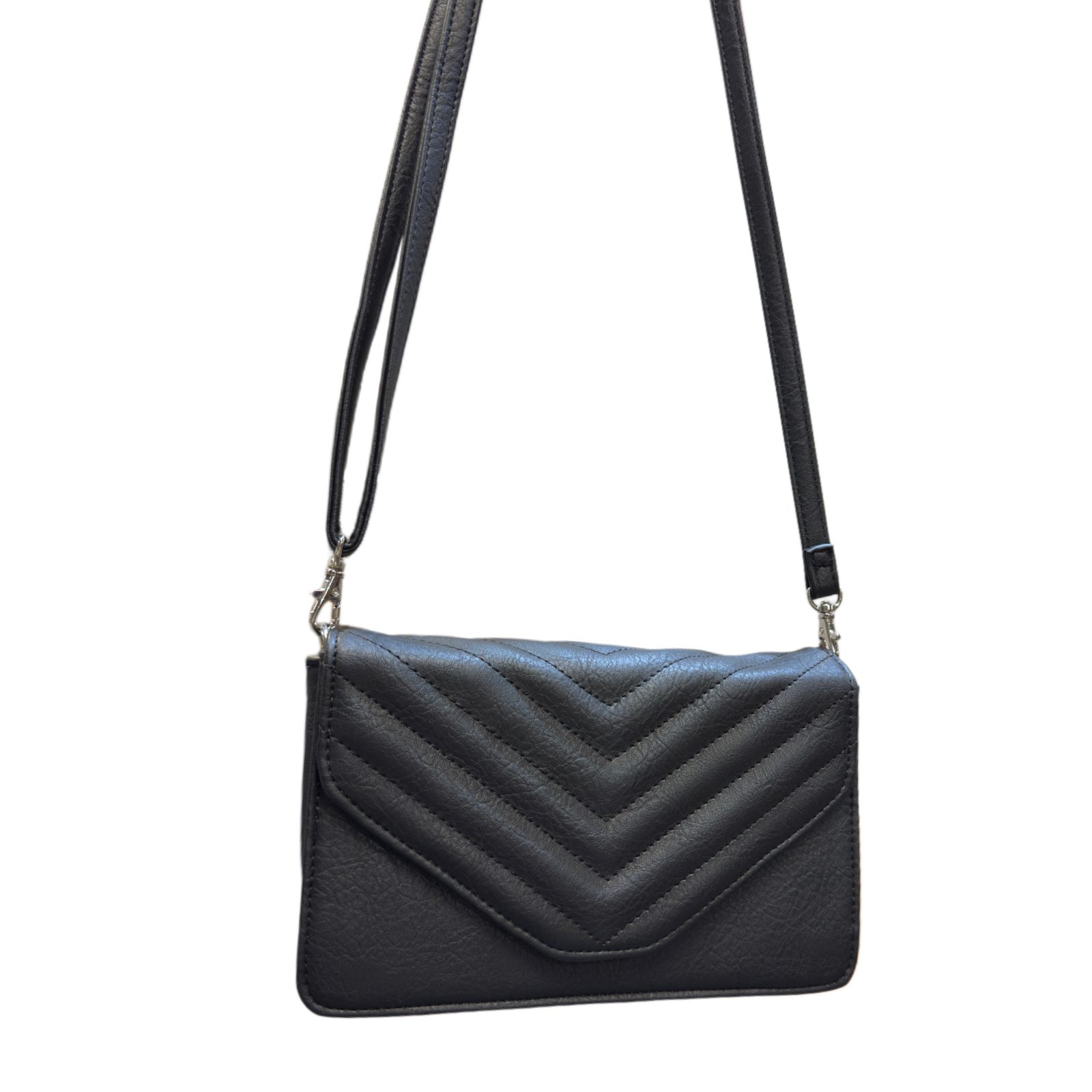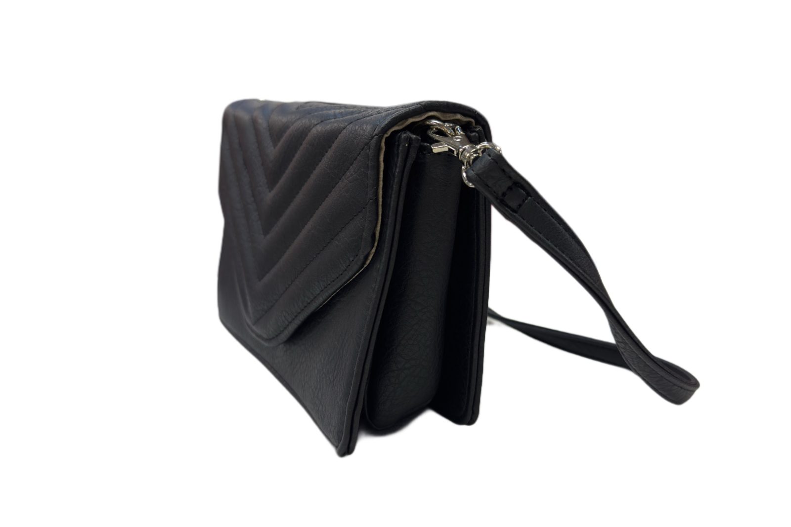 Tämä pieni musta olkalaukku on tyylikäs ja monipuolinen valinta niin juhlaan kuin arkeen. Laukussa on selkeä ja käytännöllinen rakenne: magneettinepparilla suljettavan läpän alta löytyy kolmeen osioon jaettu päätila. Etuosiossa on neljä kätevää korttipaikkaa, ja keskiosassa sekä avotasku että vetoketjutasku pienten tavaroiden säilytykseen. Laukun takana oleva vetoketjutasku tarjoaa lisää säilytystilaa. Vaalea sisäkangas helpottaa sisältöjen löytymistä. Mukana tulee pitkä, irrotettava ja säädettävä olkahihna, jonka ansiosta laukku mukautuu erilaisiin kantotyyleihin.