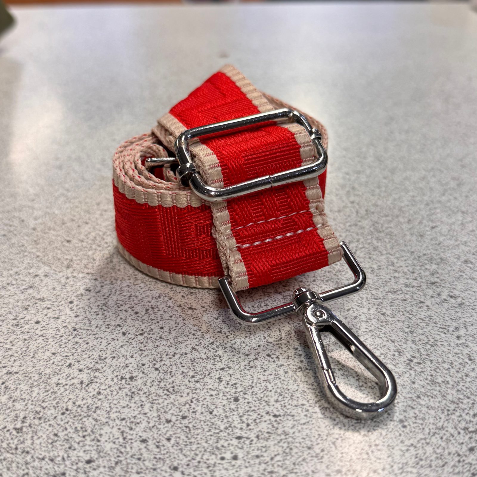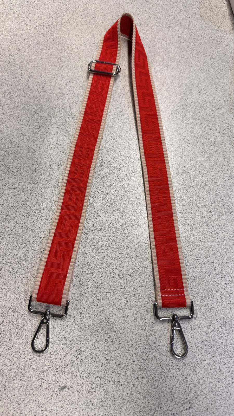 Päivitä laukkusi ilme tällä näyttävällä punaisella olkahihnalla! Hihna on valmistettu laadukkaasta kankaasta, jossa on tyylikäs geometrinen kuvio. Säädettävä pituus (max. 135 cm, leveys 3,7 cm) ja hopeanväriset metalliosat tekevät siitä sekä käytännöllisen että elegantin.