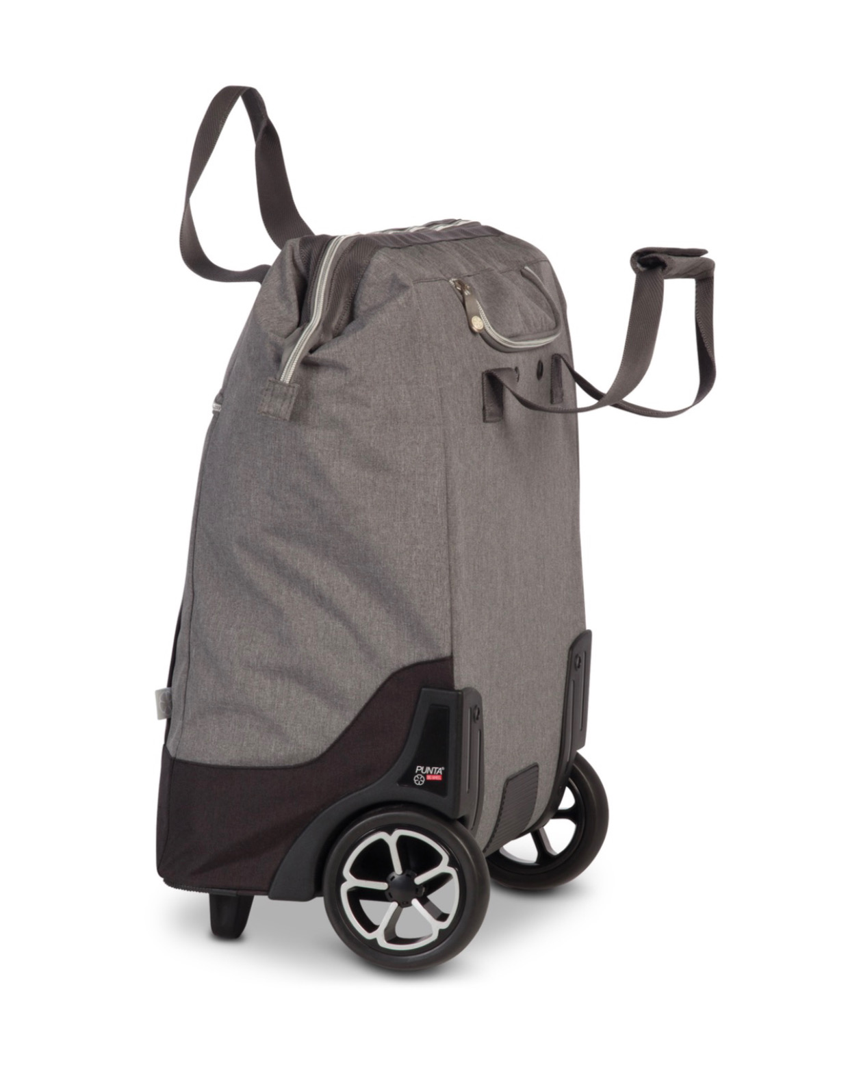Tukeva kaksoisvarsi, vahva 600D polyesterimateriaali sekä kaksi tukijalkaa takaavat vakaan ja kestävän käytön. Vetoketjulliset sisä- ja etutaskut auttavat pitämään tavarat järjestyksessä.