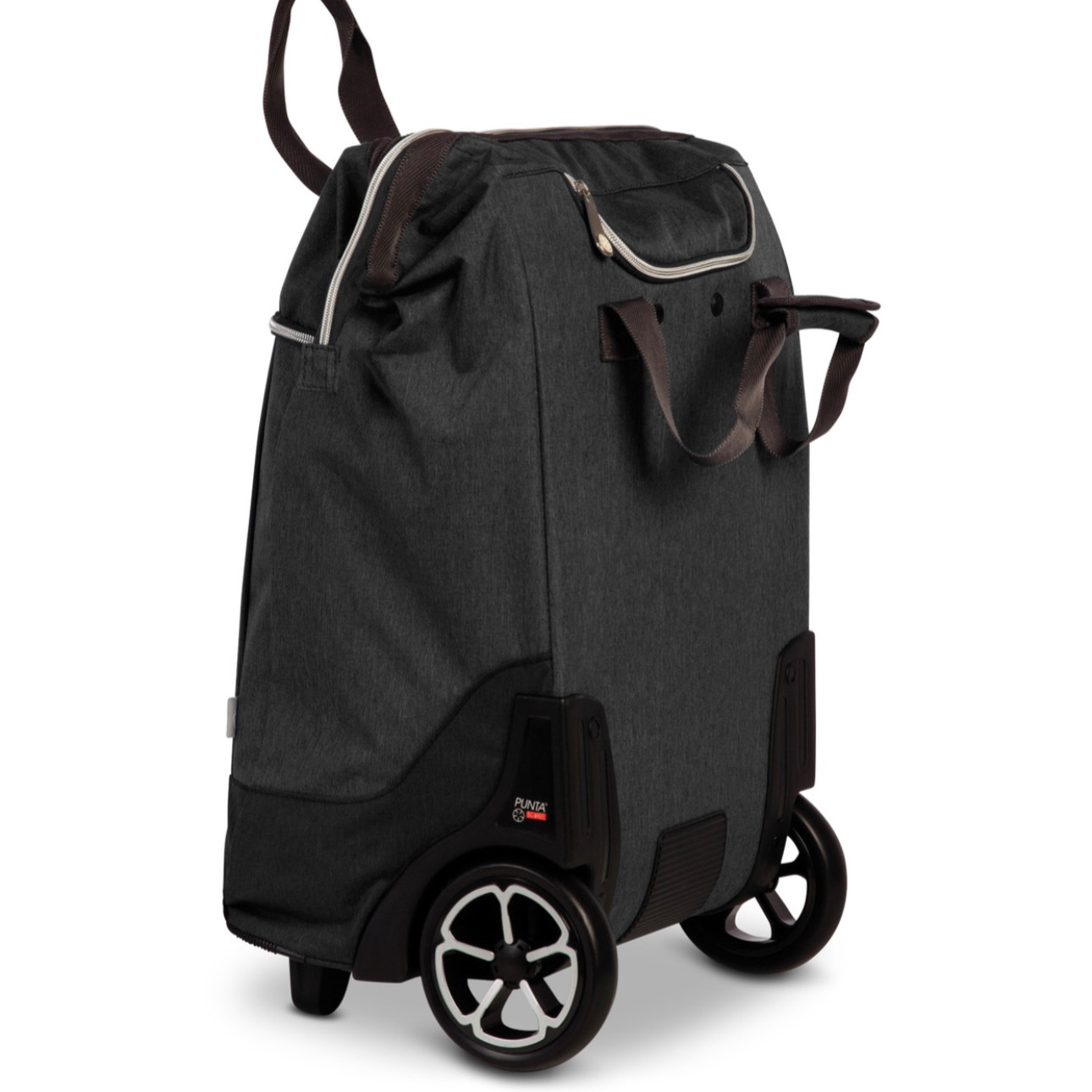 Käytännöllinen ja tilava Punta Big Wheel -ostoskärry helpottaa ostosten kuljettamista arjessa. XL-kokoinen päälokero ja 40 litran tilavuus tarjoavat runsaasti tilaa ostoksille. Erittäin suuret ja hiljaiset pyörät kulkevat helposti epätasaisilla teillä, reunakivien yli ja portaissa, myös täyteen lastattuna.