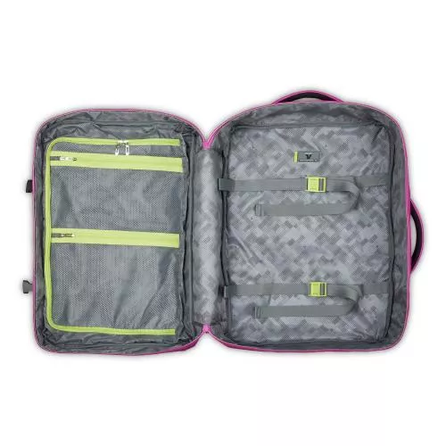 Sisäiset jakajat pitävät vaatteet siisteinä ja erillään paremman järjestyksen takaamiseksi, ja kiinnityshihnat pitävät tavarat paikoillaan.