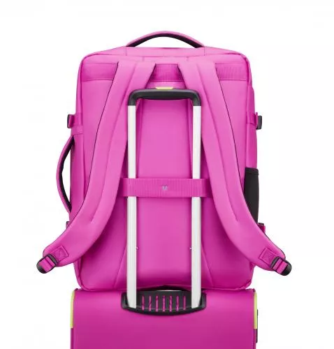 Selkätuki mahdollistaa repun kiinnittämisen matkalaukun kahvaan.