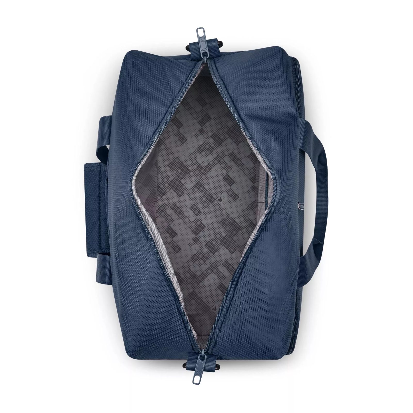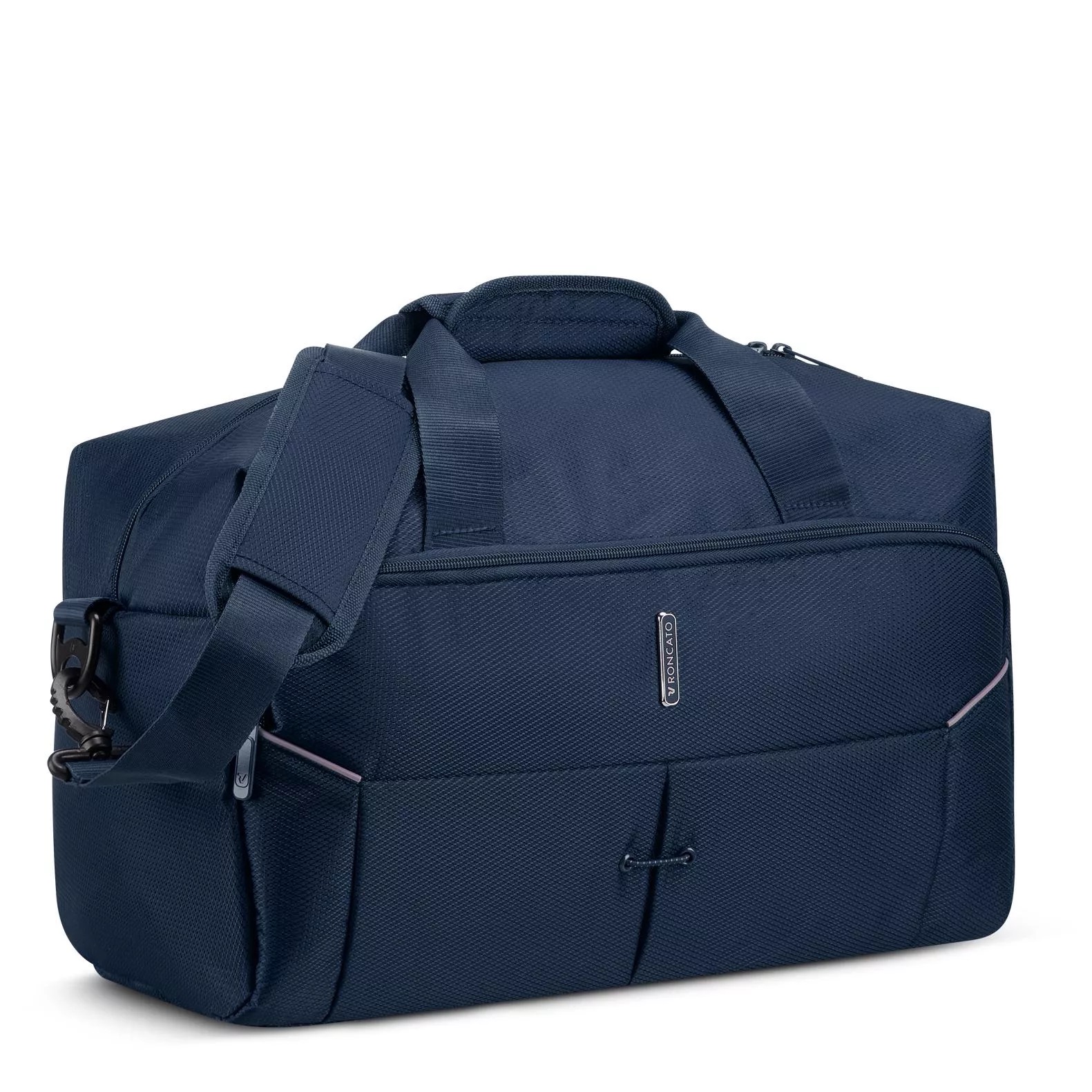 Kevyt Roncato cabin matkakassi, jossa useita taskuja, olkahihna ja Smart Sleeve matkalaukkuun kiinnittämistä varten. Ryanair-mitat 40×25×20 cm, tilavuus 20 L.