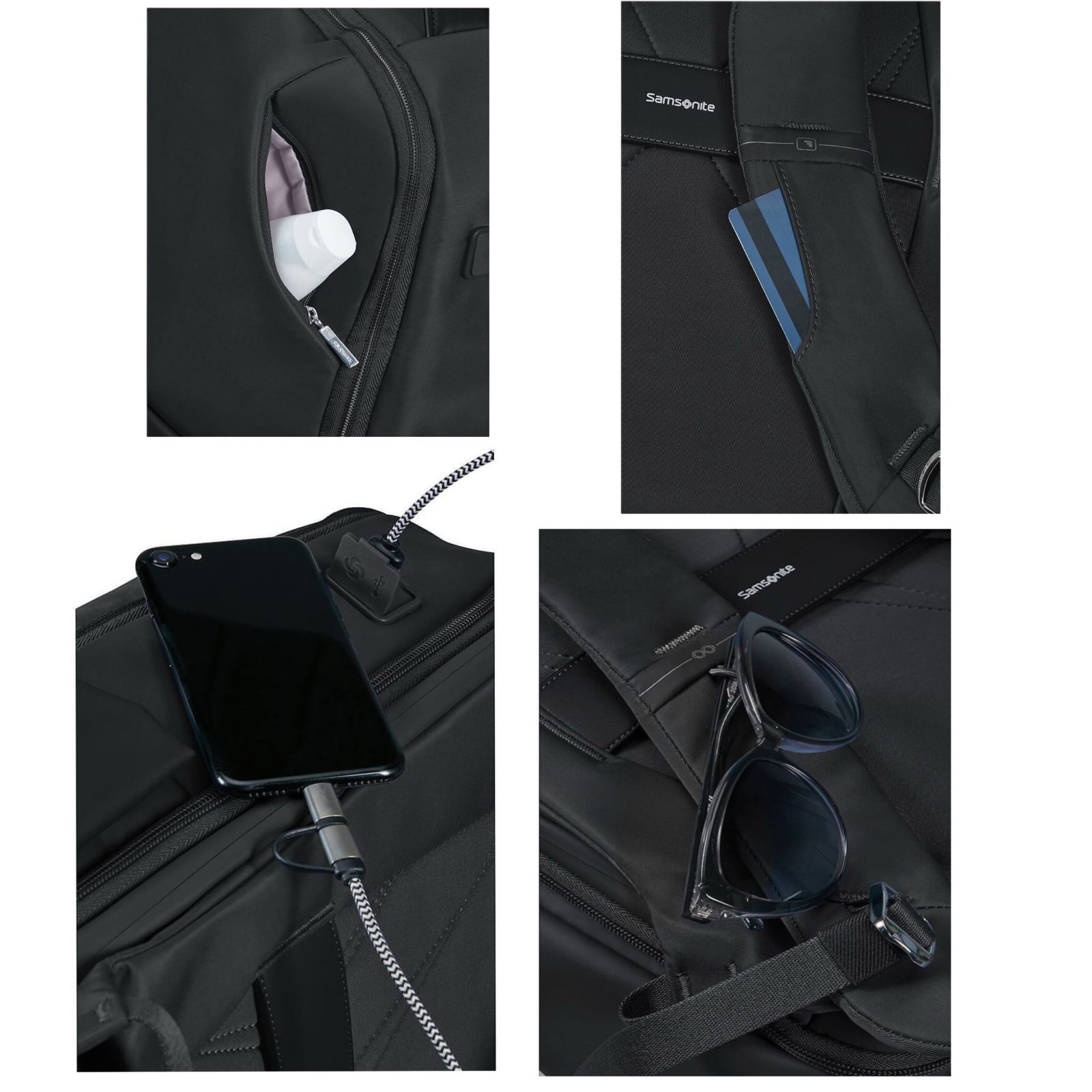 Easy Pass -järjestelmä mahdollistaa latausjohtojen kuljettamisen laukun eri osastojen läpi, joten laitteet pysyvät latauksessa ilman, että niitä tarvitsee ottaa ulos.