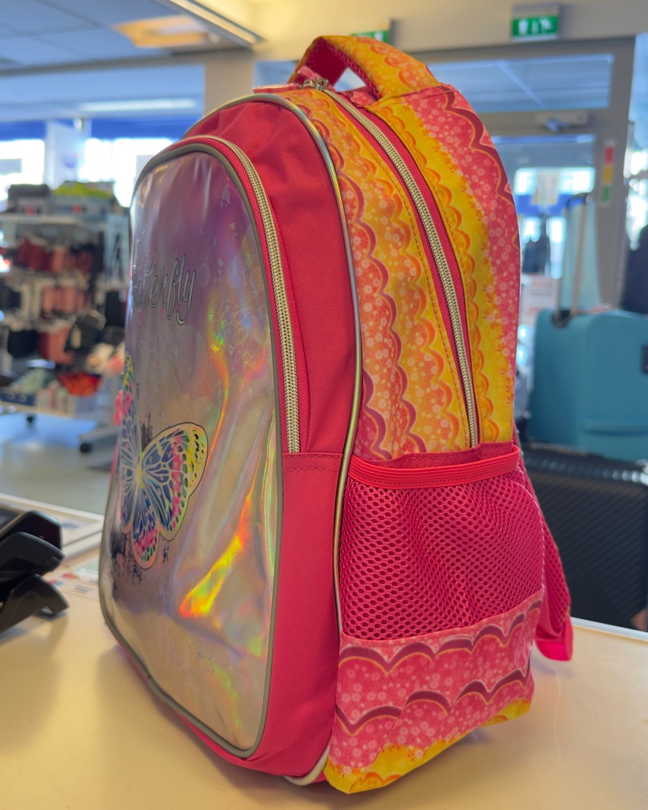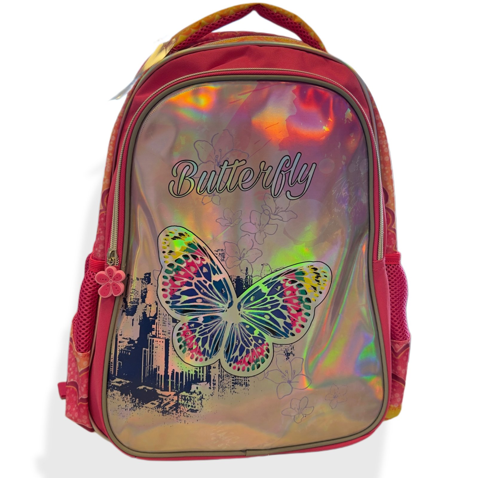 Turvallisuutta lisäävät heijastimet olkahihnoissa sekä repun etuosassa oleva kapea heijastinnauha. Sisäosa on muovitettu, mikä helpottaa puhtaanapitoa. Tyylikäs hologramminen etuosa kauniilla kuosilla tekee repusta erityisen näyttävän.