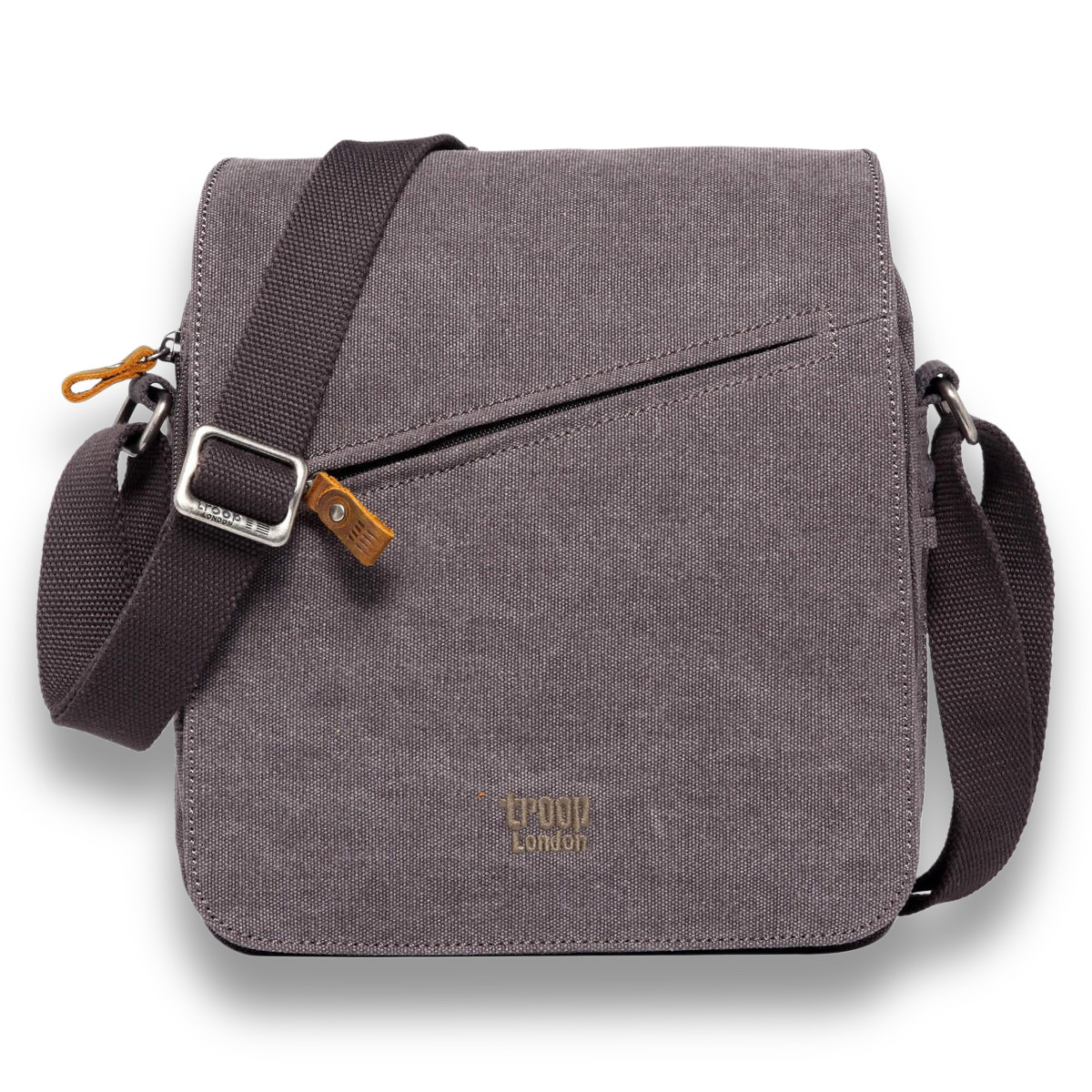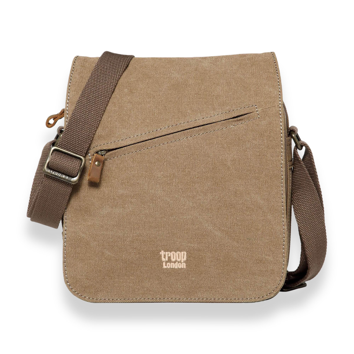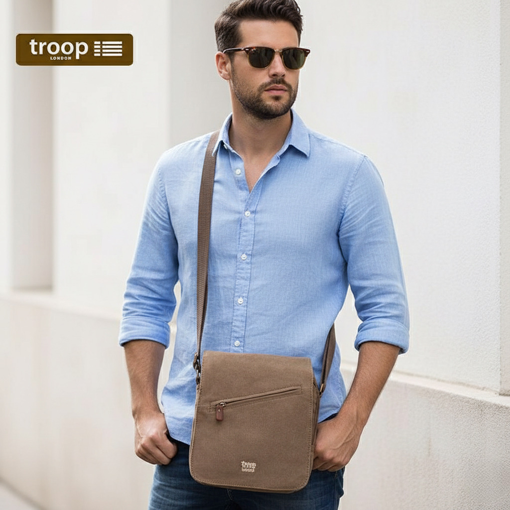 Keskikokoinen laukku, jossa on etuläppä sekä tilava päätasku laajennettavalla pohjalla. Olkahihnassa on kaksi solkea pituuden säätämistä varten sekä pehmuste, joka lisää käyttömukavuutta. TRP0238 on yksi Troop London Classic -malliston suosituimmista canvas-crossbody-laukuista.