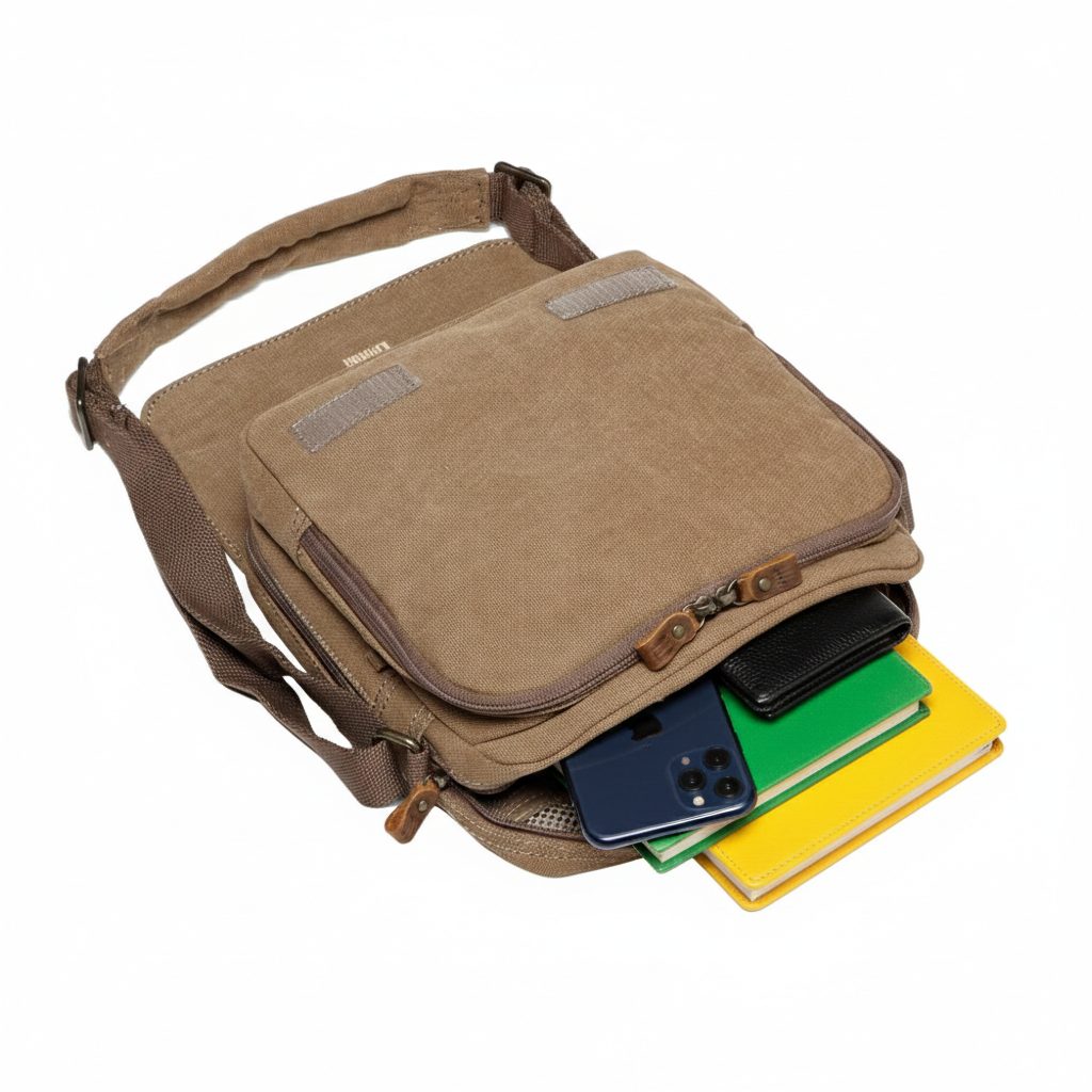 - Ulkomateriaali: Erittäin kestävä canvas, aidot nahkayksityiskohdat ja huolellisesti viimeistellyt vetoketjunvetimet
