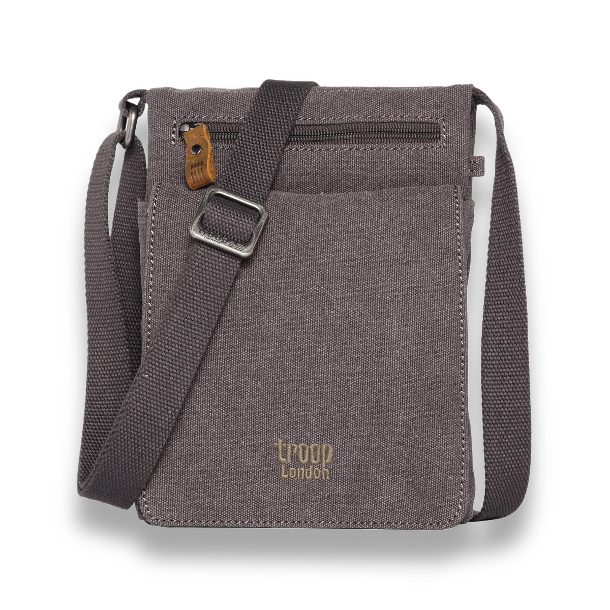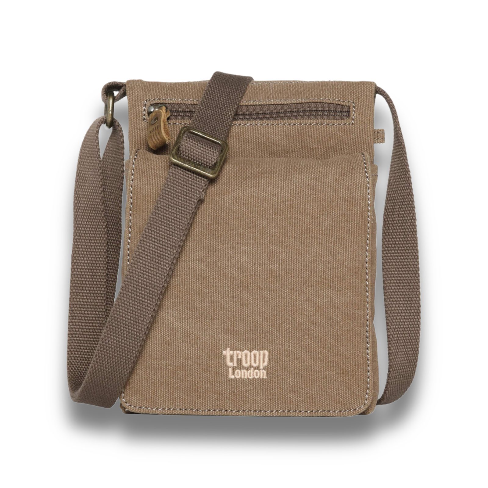 - Säädettävä canvas-olkahihna, jossa tyylikkäät ja käytännölliset messinkipinnoitetut soljet