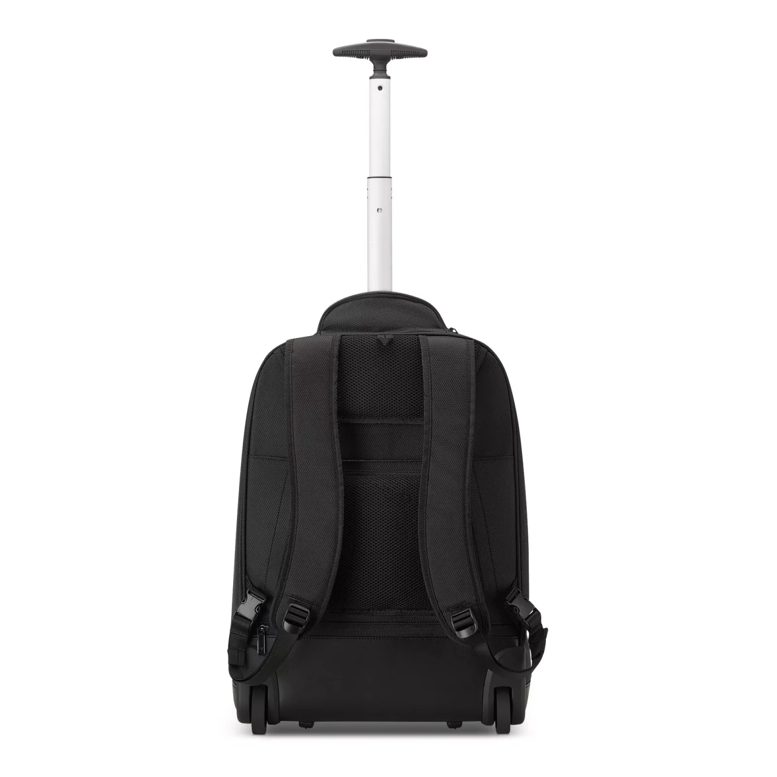 Reppu on varustettu kahdella kestävällä pyörällä ja tukevalla vetoaisalla, joten sitä on helppo vetää silloin, kun kuorma käy liian raskaaksi selässä kannettavaksi. Integroitu tukijalka pitää repun vakaana maassa ja mahdollistaa helpon pääsyn sisältöön ilman kaatumista. Kun reppua käytetään selässä, irrotettava pyöräsuoja suojaa vaatteita lialta ja pyöriä kulumiselta.